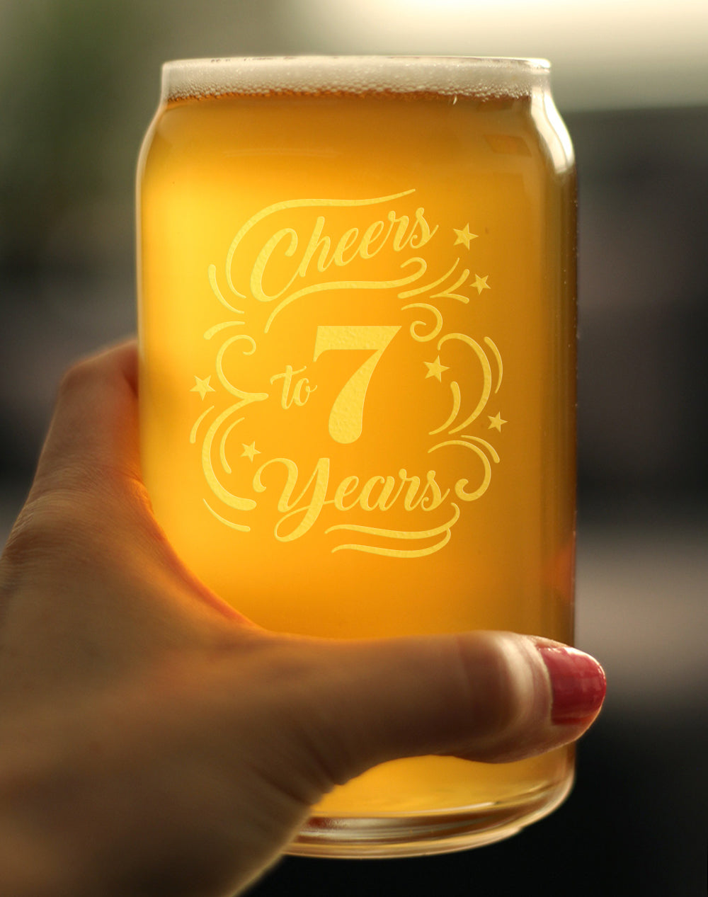 Cheers to 7 Years - Beer Can Pint Glass Gifts for Women & Men - 7th Anniversary Party Decor - 16 Oz Glasses