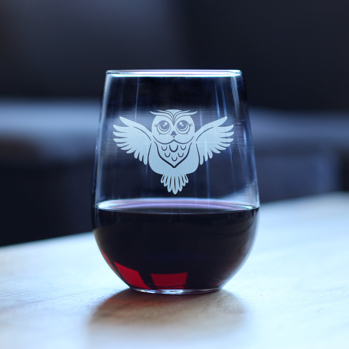 Cute Owl Stemless Wine Glass - Fun Owl Decor and Gifts for Women and Men - Large 17 Oz Glasses