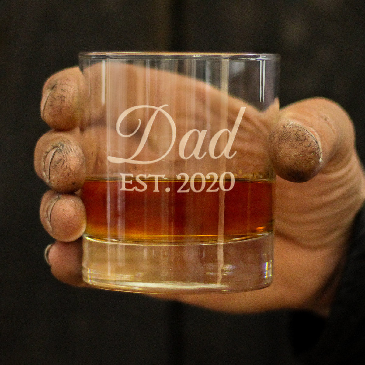 Dad Est 2020 - New Father Whiskey Rocks Glass Gift for First Time Parents - Decorative 10.25 Oz Glasses