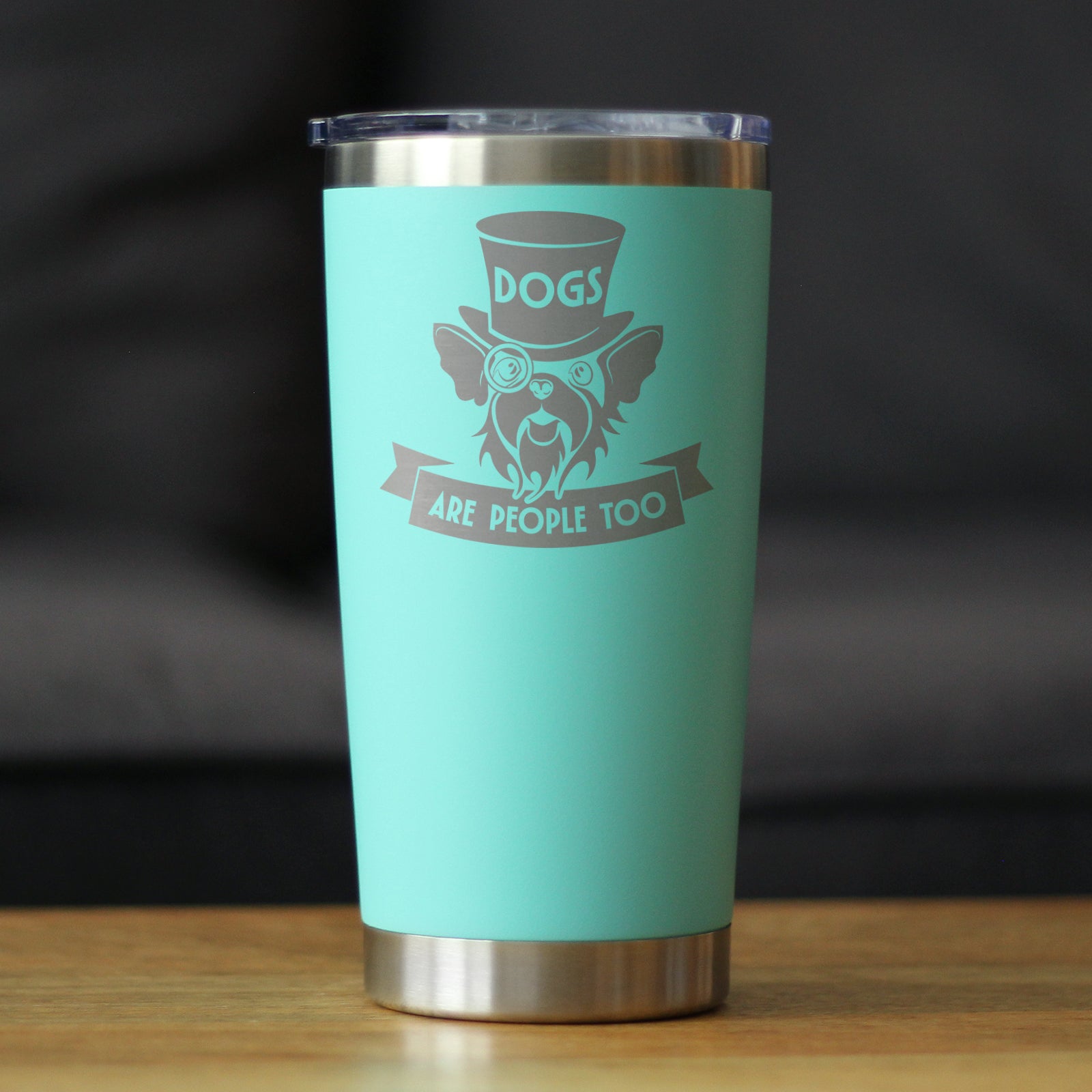 Dogs Are People Too Insulated Coffee Tumbler with Sliding Lid Gifts for Dog People 20oz Stainless Steel Tumbler ‐ Teal