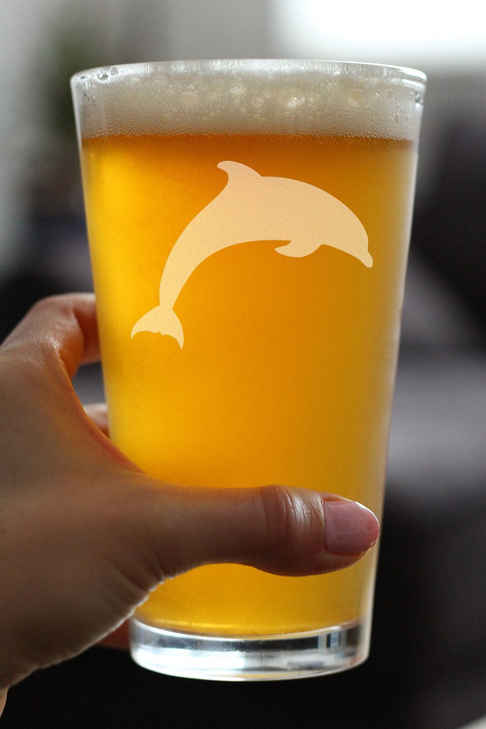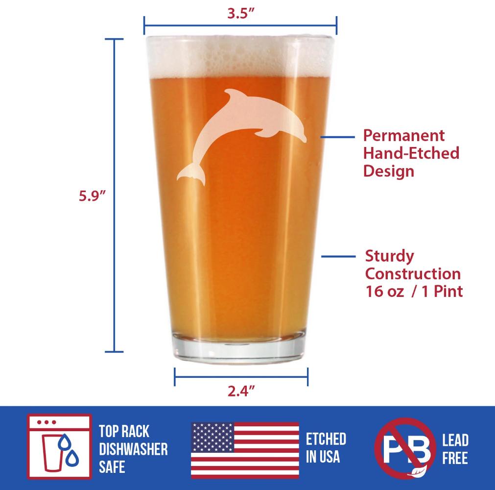 Dolphin - 16 oz Pint Glass for Beer - Cute Dolphin Themed Gifts or Party Decor for Women & Men - Fun Drinking Glasses