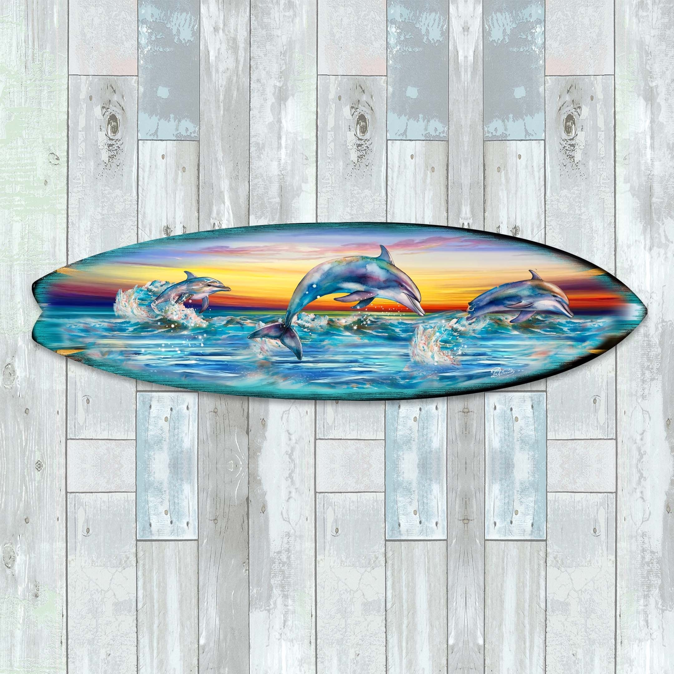 Dolphin's Dance Surfboard Coastal Wall Art by G. DeBrekht - Coastal Holiday Decor - 8490122HS