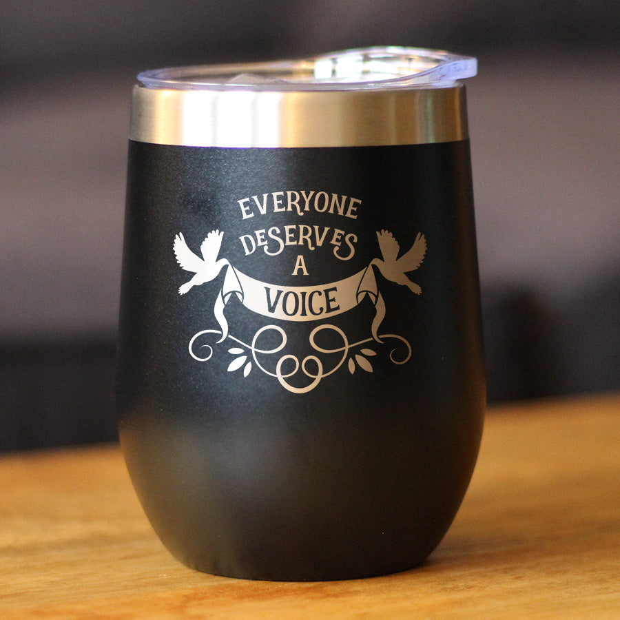 Everyone Deserves A Voice Insulated Wine Tumbler with Sliding Lid Gifts for Speech Language Pathologists 12oz Stainless Steel Tumbler ‐ Black