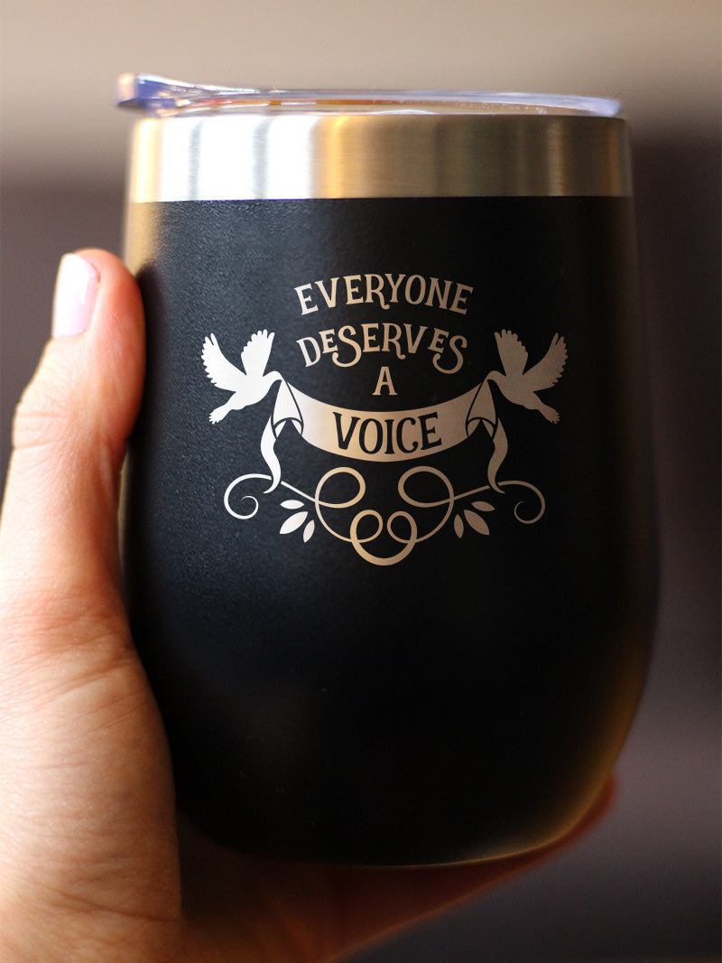 Everyone Deserves A Voice Insulated Wine Tumbler with Sliding Lid Gifts for Speech Language Pathologists 12oz Stainless Steel Tumbler