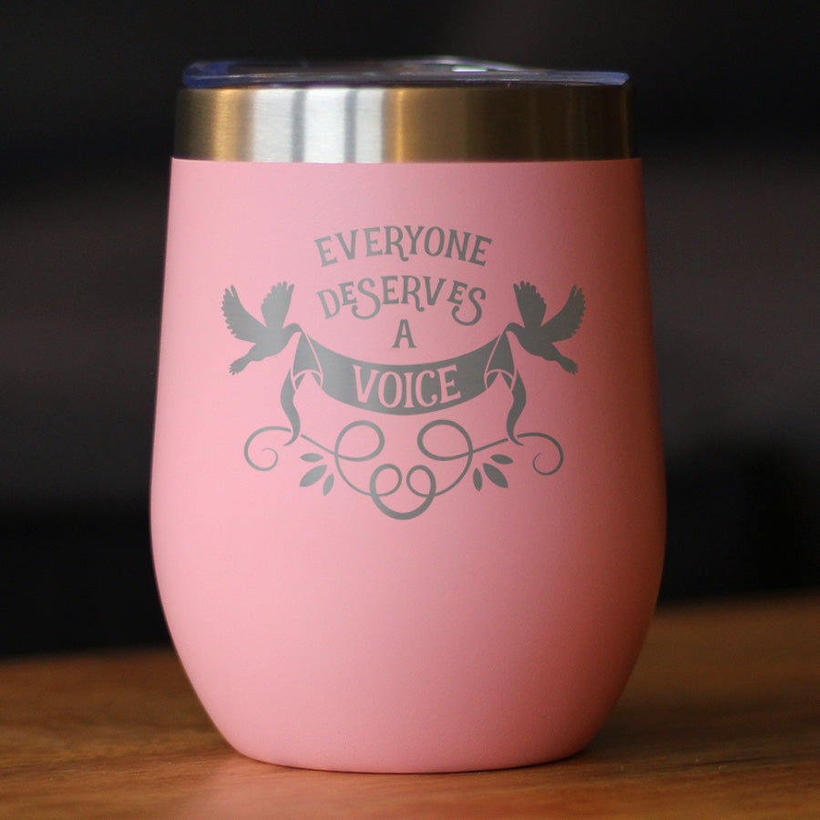 Everyone Deserves A Voice Insulated Wine Tumbler with Sliding Lid Gifts for Speech Language Pathologists 12oz Stainless Steel Tumbler ‐ Pink