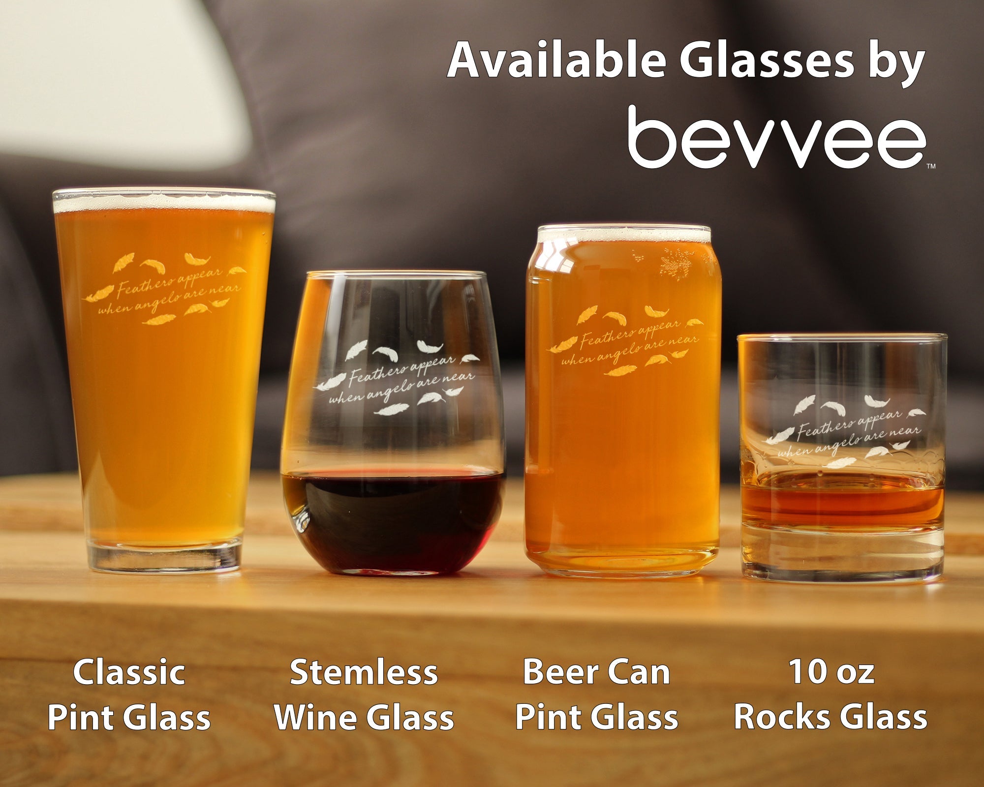 Feathers Appear when Angels are Near - Beer Can Pint Glass - Bereavement Memorial Gifts for Loss of Loved One - 16 oz Glasses