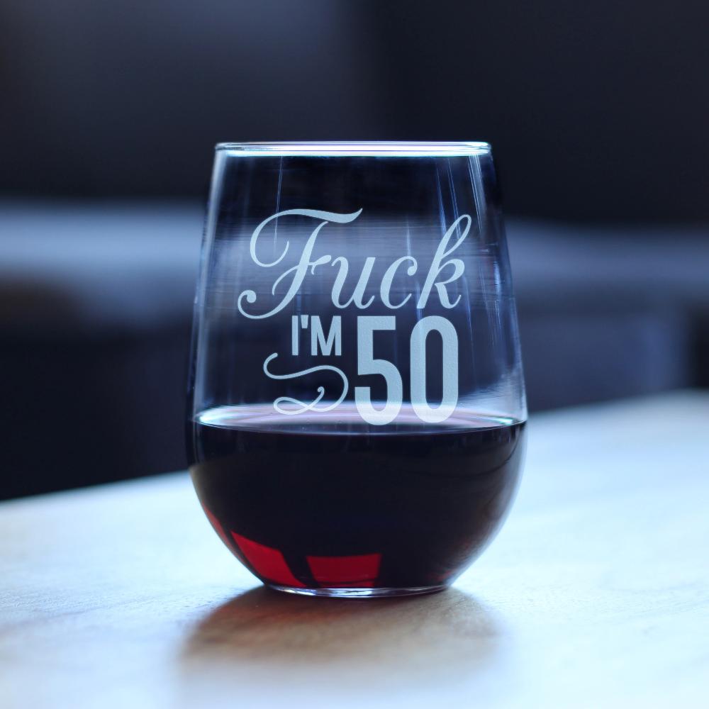 Fuck I'm 50 - 17 Ounce Stemless Wine Glass