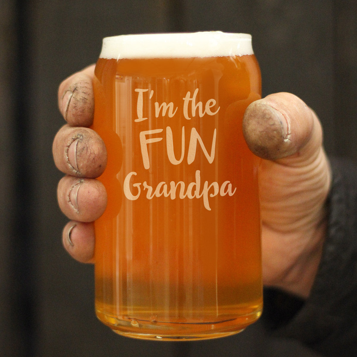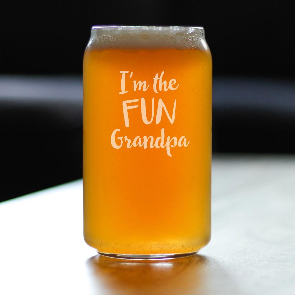 Fun Grandpa - Funny Beer Can Pint Glass Glass Gift for Grandfathers - 16 Oz Glasses for Lagers and Ales