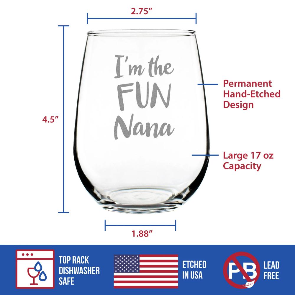 Fun Nana - Cute Funny Stemless Wine Glass, Large Glasses, Etched Sayings, Gift Box