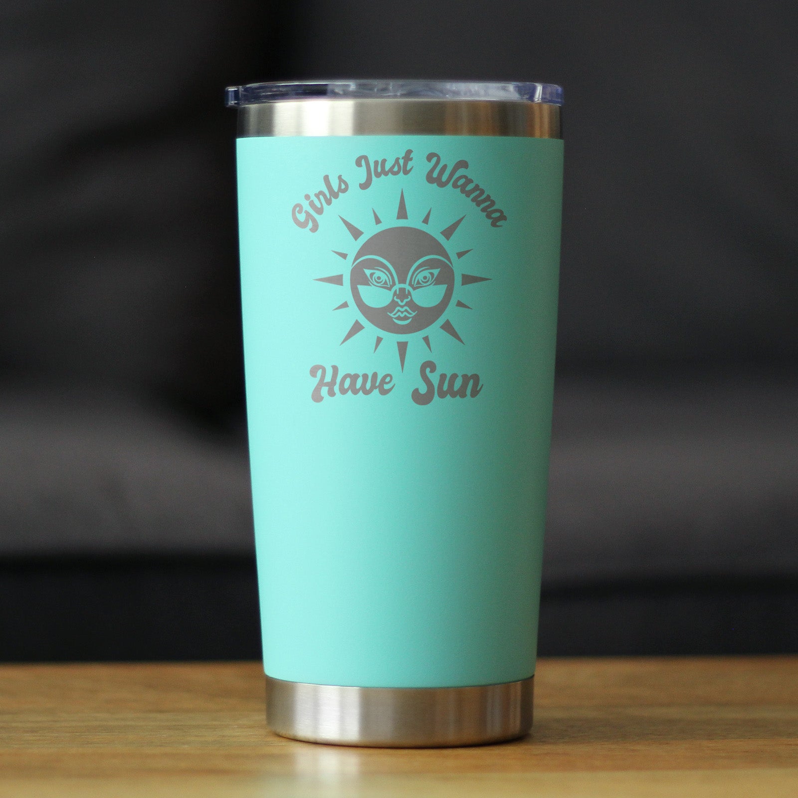 Girls Just Wanna Have Sun - Insulated Coffee Tumbler Cup with Sliding Lid - Stainless Steel Insulated Mug - Funny Beach Themed Gifts for Women