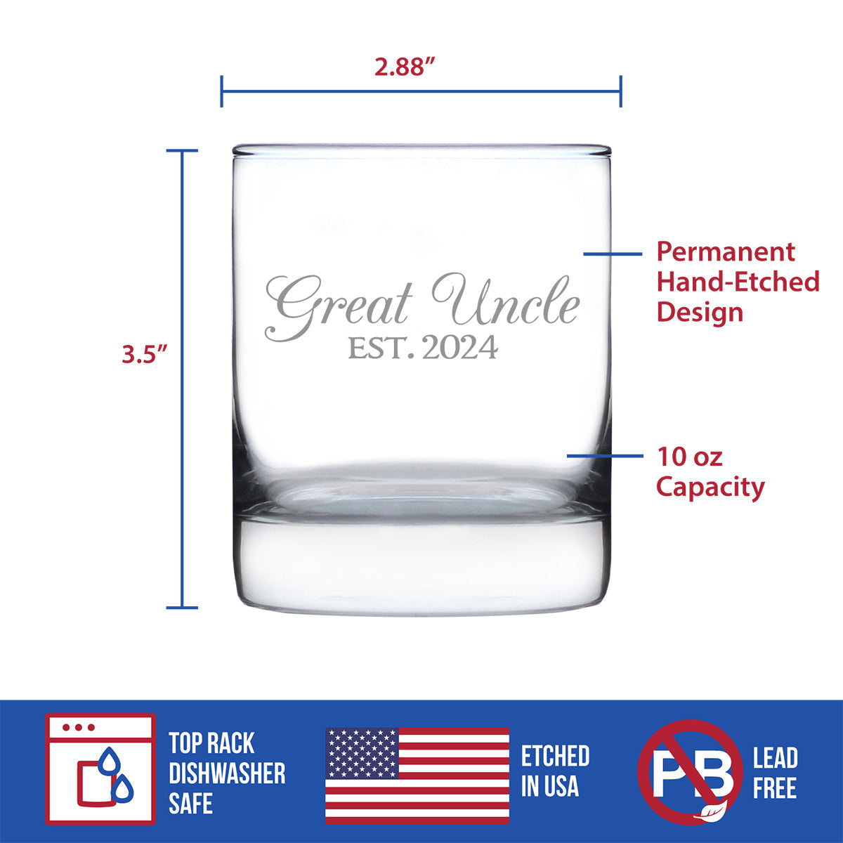 Great Uncle Est 2024 - Whiskey Rocks Glass Gift for First Time Great Uncles - Decorative 10.25 Oz Glasses