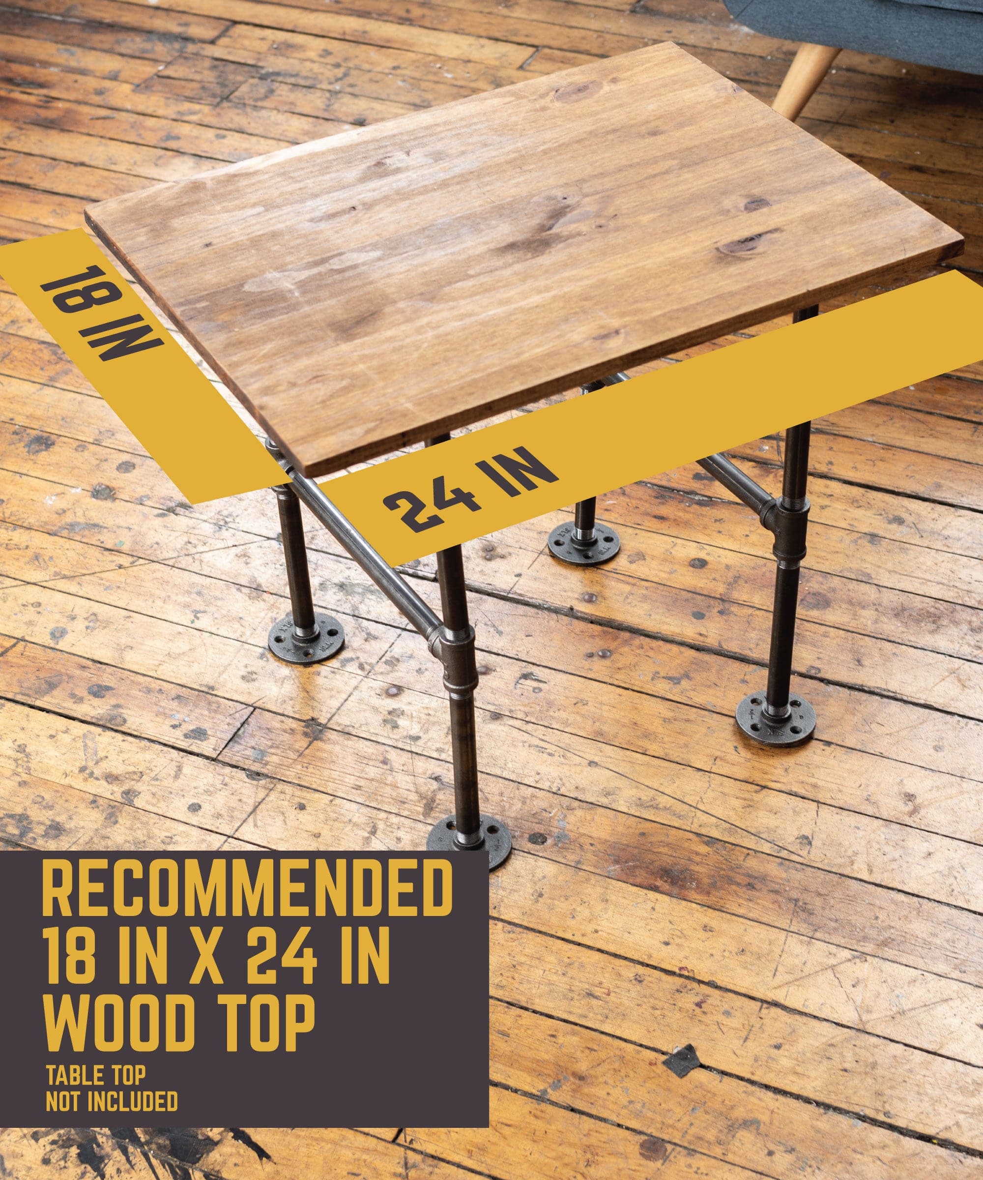 - We recommend an 18 in. L x 24 in. D wood tabletop (tabletop not included with kit)