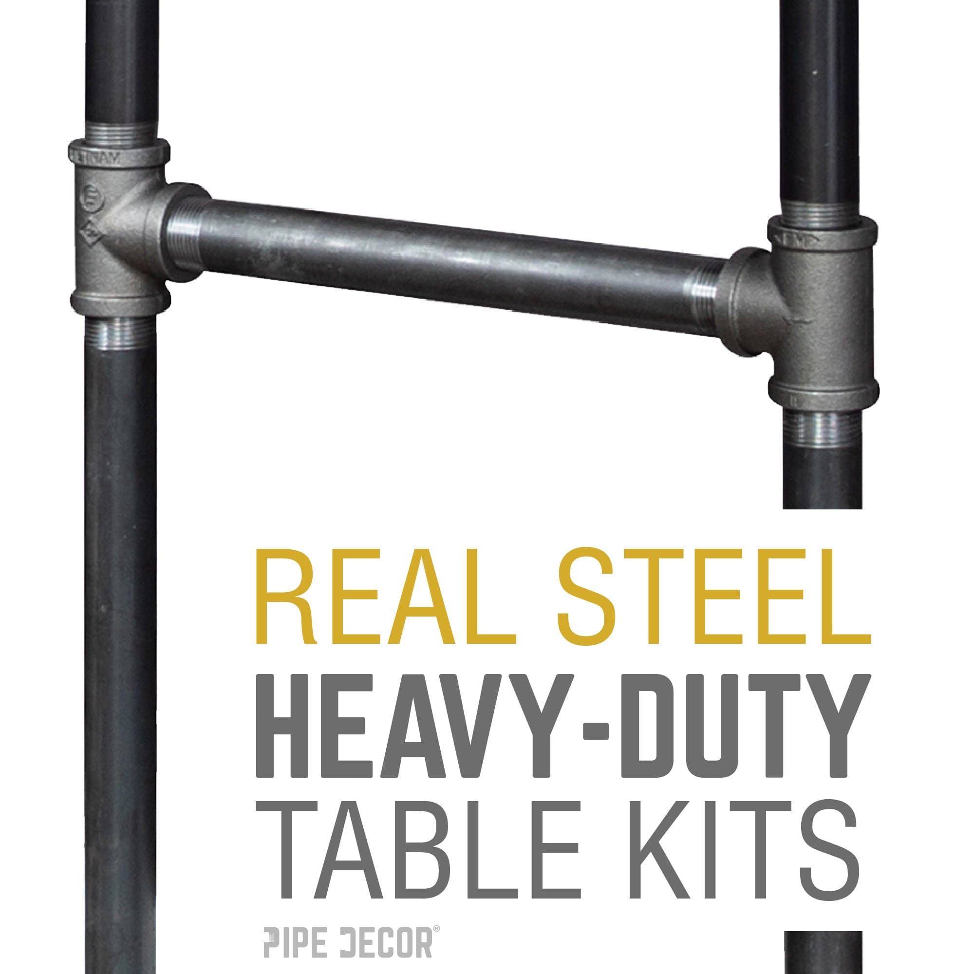 These bar-height table legs make building unique-looking bar tables and counters easy. Made with real steel pipes and iron fittings, these legs will give your bar-height furniture an industrial charm that suits any room of the house. Create a breakfast counter or a real pub-height bar. Perfect for kitchens, bars, dining rooms, living rooms, man caves, dens, workshops, garages, basements, and more. You’ll be living the pipe dream in no time! These table legs are made with thick, 1” steel pipes—perfect for heavy-duty table tops, from custom pieces to thick wood slabs. These pipes have a commanding presence and can hold up to wear and tear. For longer tables, you can buy multiple sets for additional support. Our tables are also great for restaurants looking to incorporate an urban or rustic look and feel. Complete your restaurant, bar, or café with bar-height table legs. Pair them with any tabletop to create a unique bar-height table and add an eye-catching style to your establishment. Whether you’re just starting your business or doing a bit of upgrading to your design, these bar-height table legs will surely impress your guests. Watch the big game, enjoy appetizers with friends, play cards, host a bourbon tasting, or grab some beers on game night. The kit comes with necessary hardware and easy to follow step-by-step instructions.