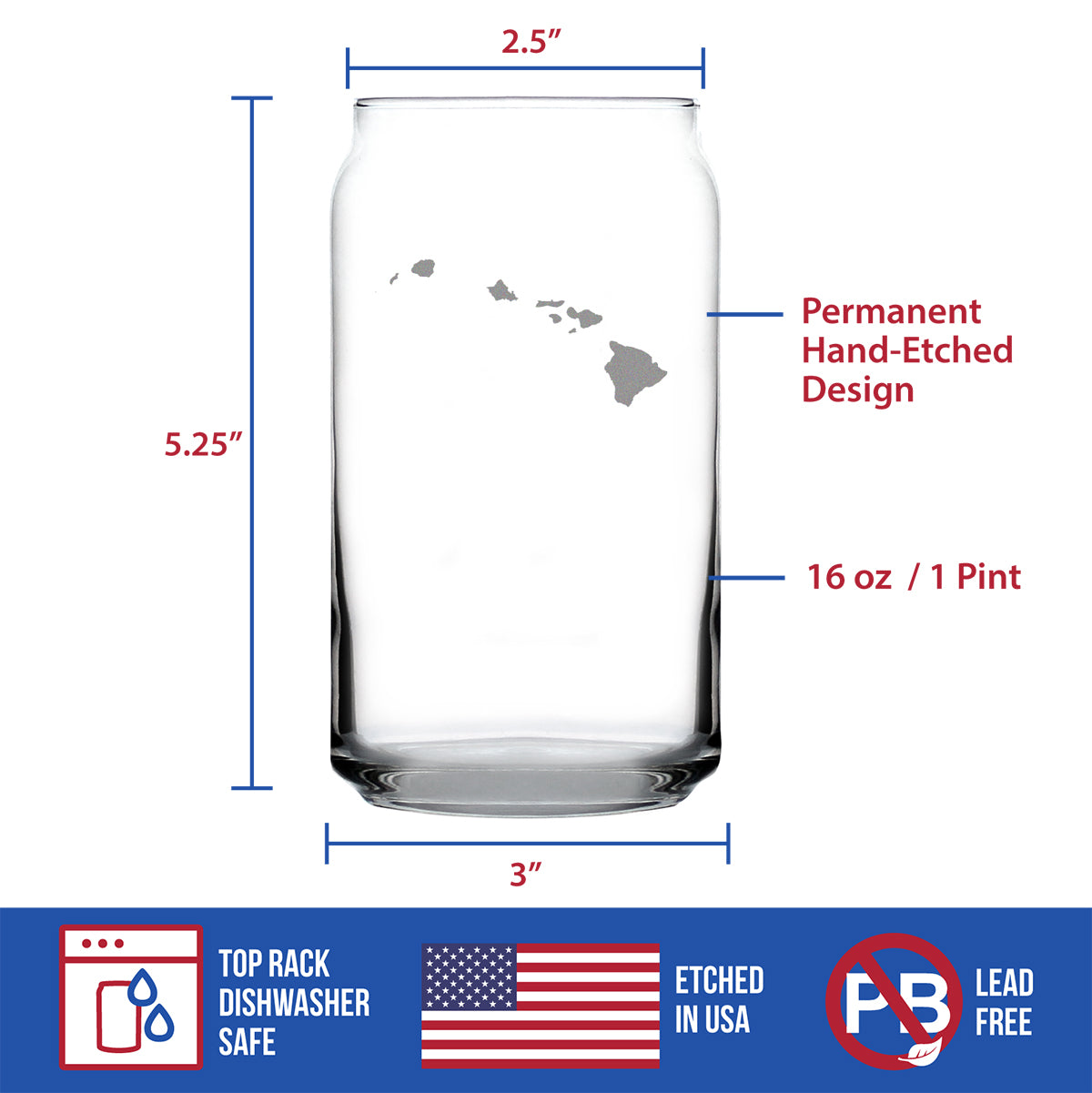 Hawaii State Outline Beer Can Pint Glass - State Themed Drinking Decor and Gifts for Hawaiian Women & Men - 16 Oz Glasses
