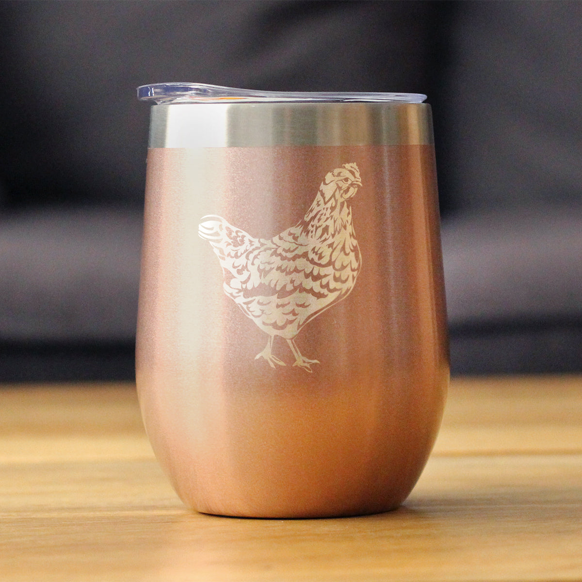 Hen - Wine Tumbler Glass with Sliding Lid - Stainless Steel Insulated Mug - Chicken Gifts for Women and Men