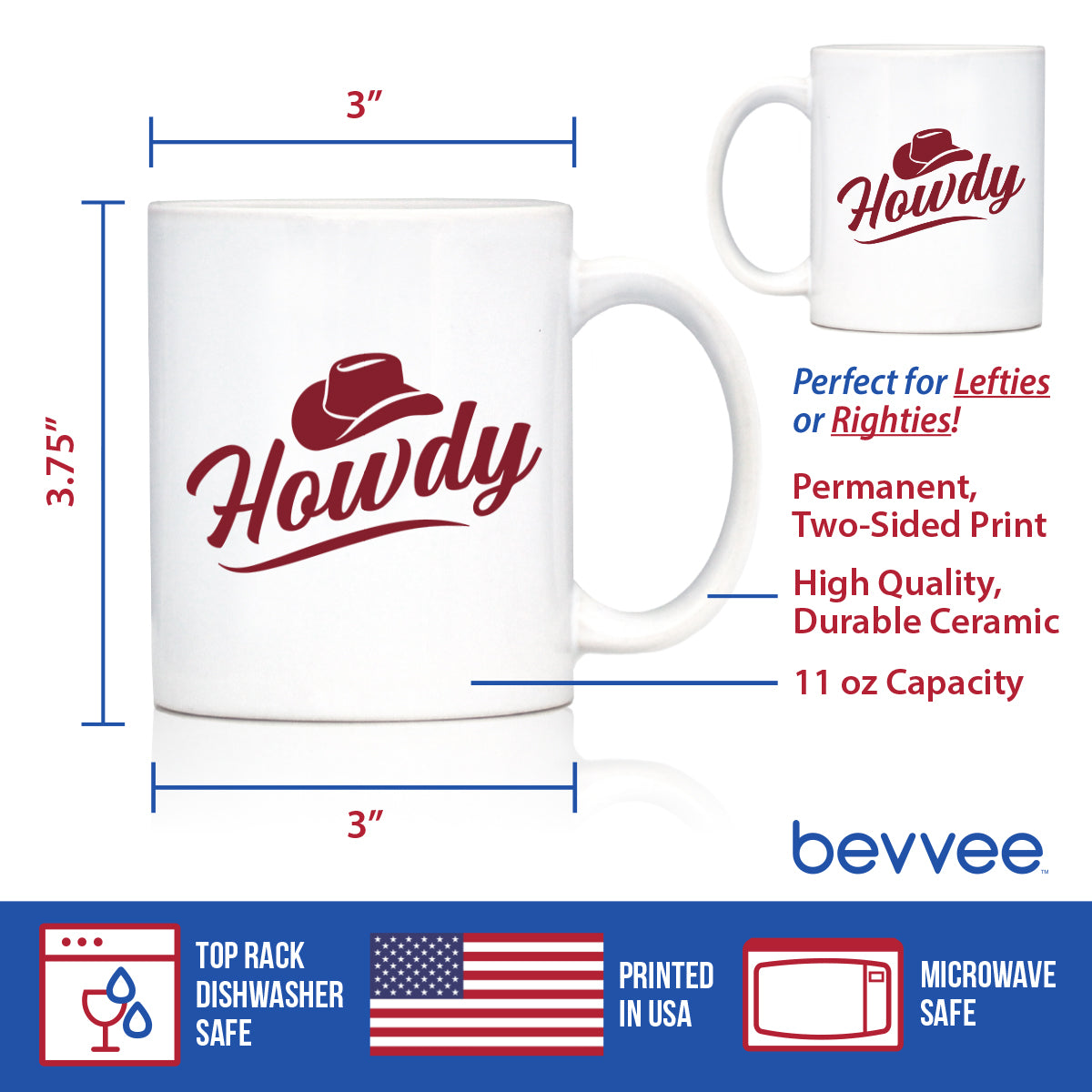 Howdy Coffee Mug Country Western Home Decor White Ceramic Coffee Cup ‐ 11oz