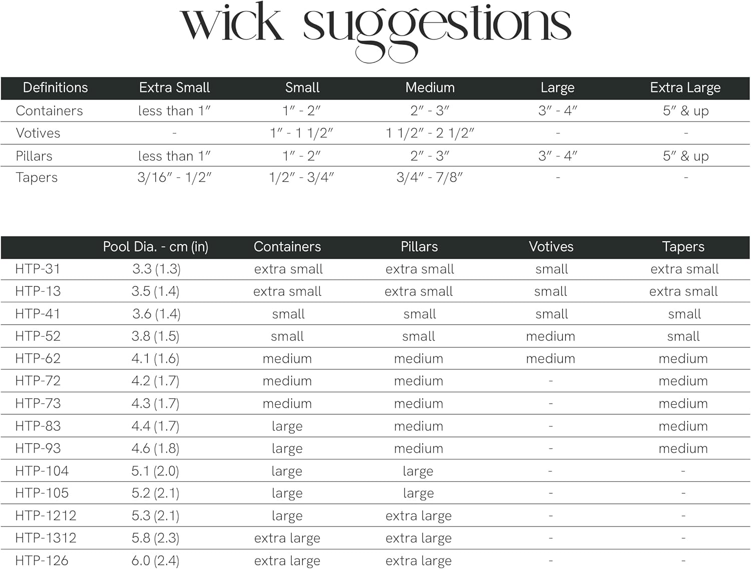 - The treated HTP wick helps improve appearance, reduce afterglow, and provide a more consistent burning performance – ideal for high fragrance or appearance critical candle applications.