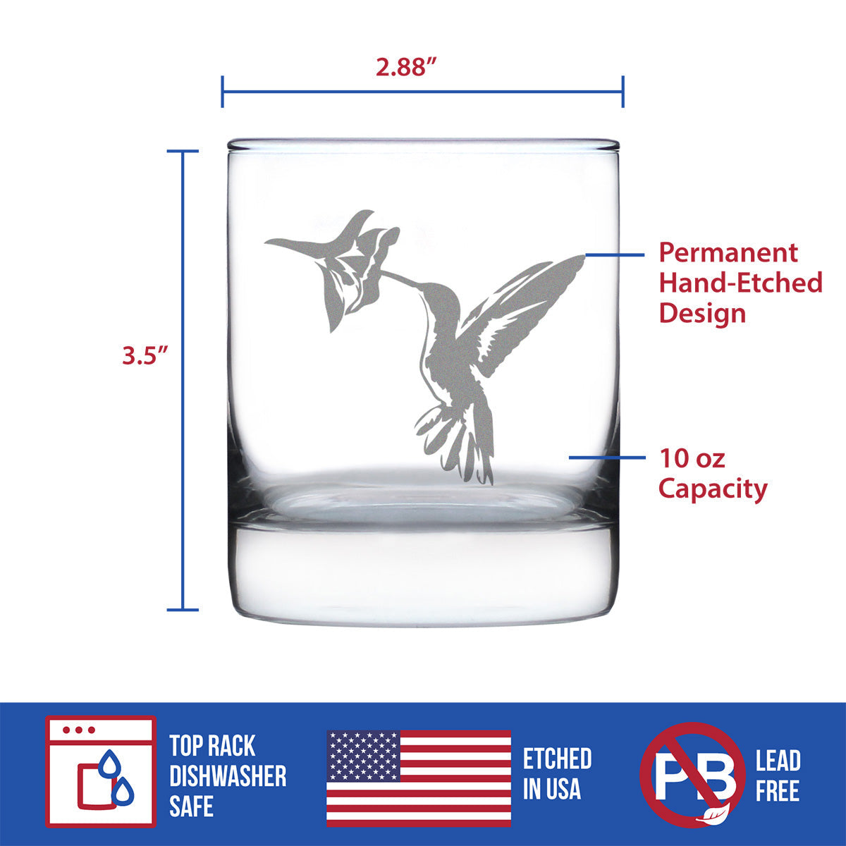 Hummingbird - Whiskey Rocks Glass Gifts - Bird Themed Gifts and Decor for Men & Women - 10.25 Oz Glasses