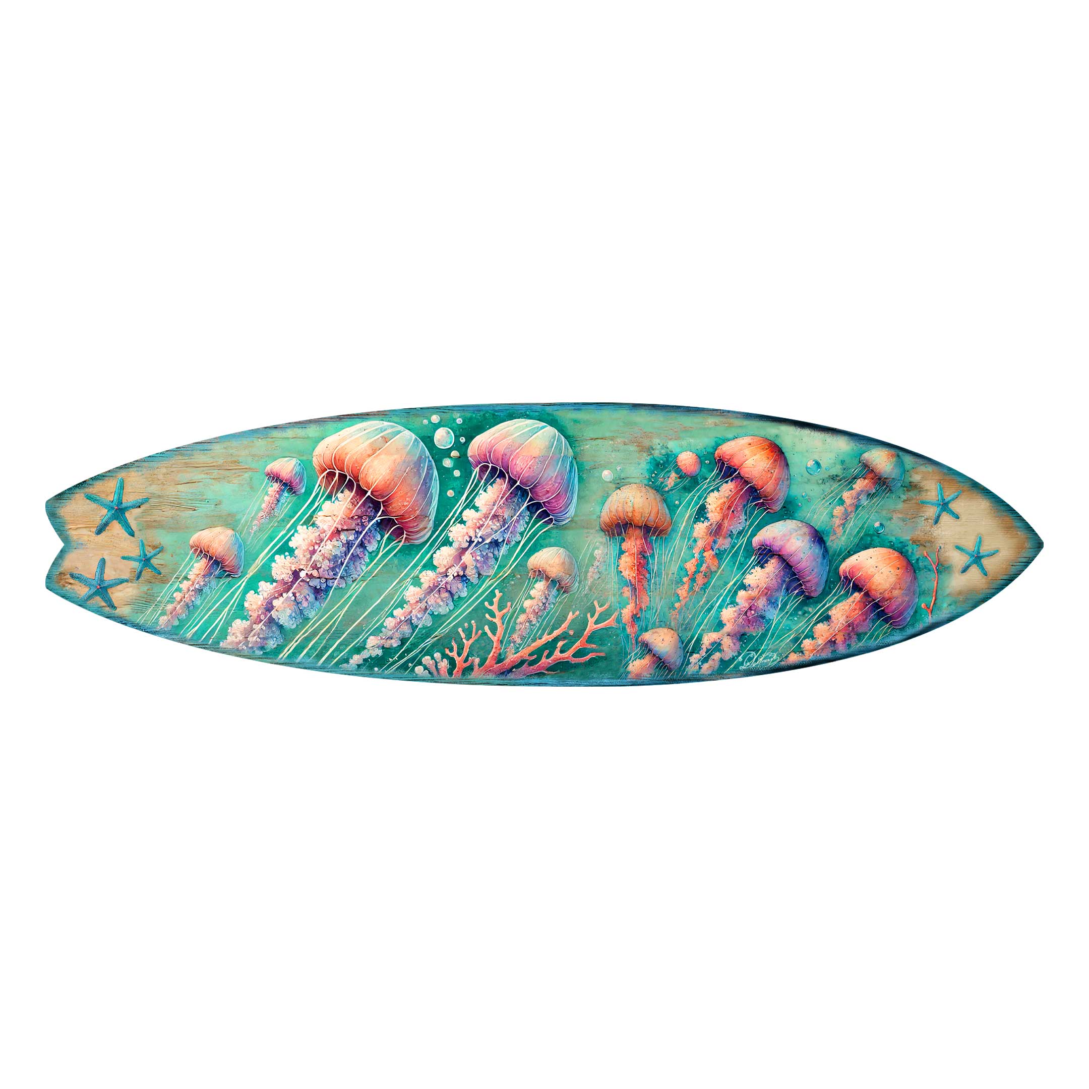 Jellyfish Surfboard Wall Art – Handcrafted Underwater Coastal Decor by G.DeBrekht – Ocean-Inspired Wooden Accent for Indoor & Outdoor – 8490153HS