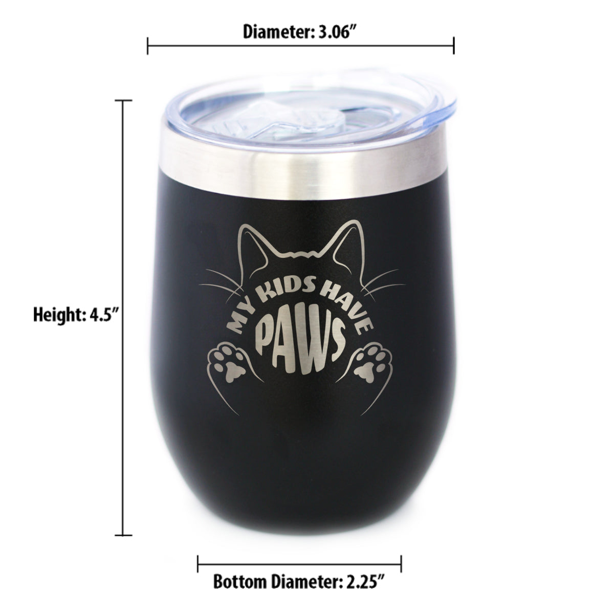 Kids Have Paws Cat Insulated Wine Tumbler with Sliding Lid Gifts for Cat People 12oz Stainless Steel Tumbler