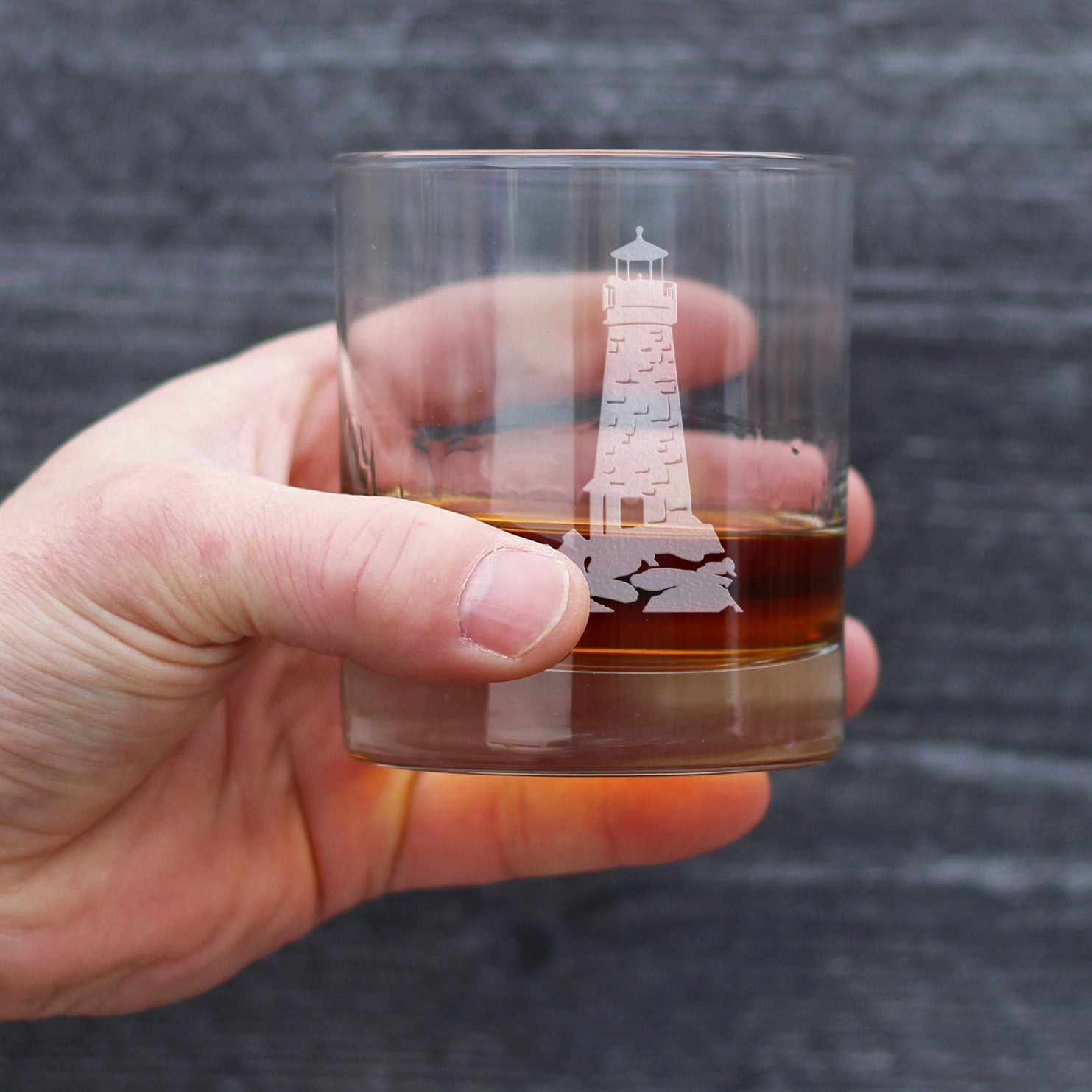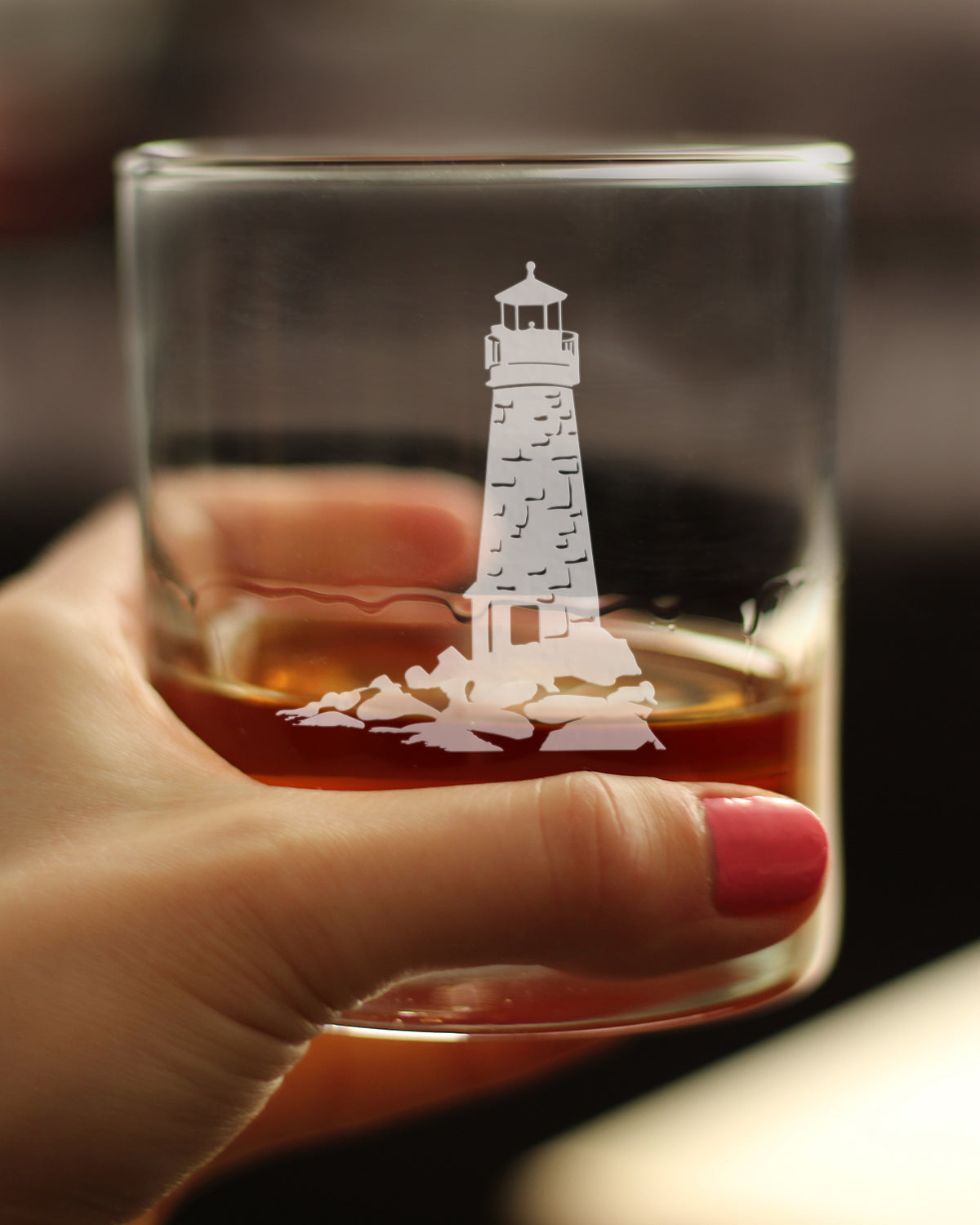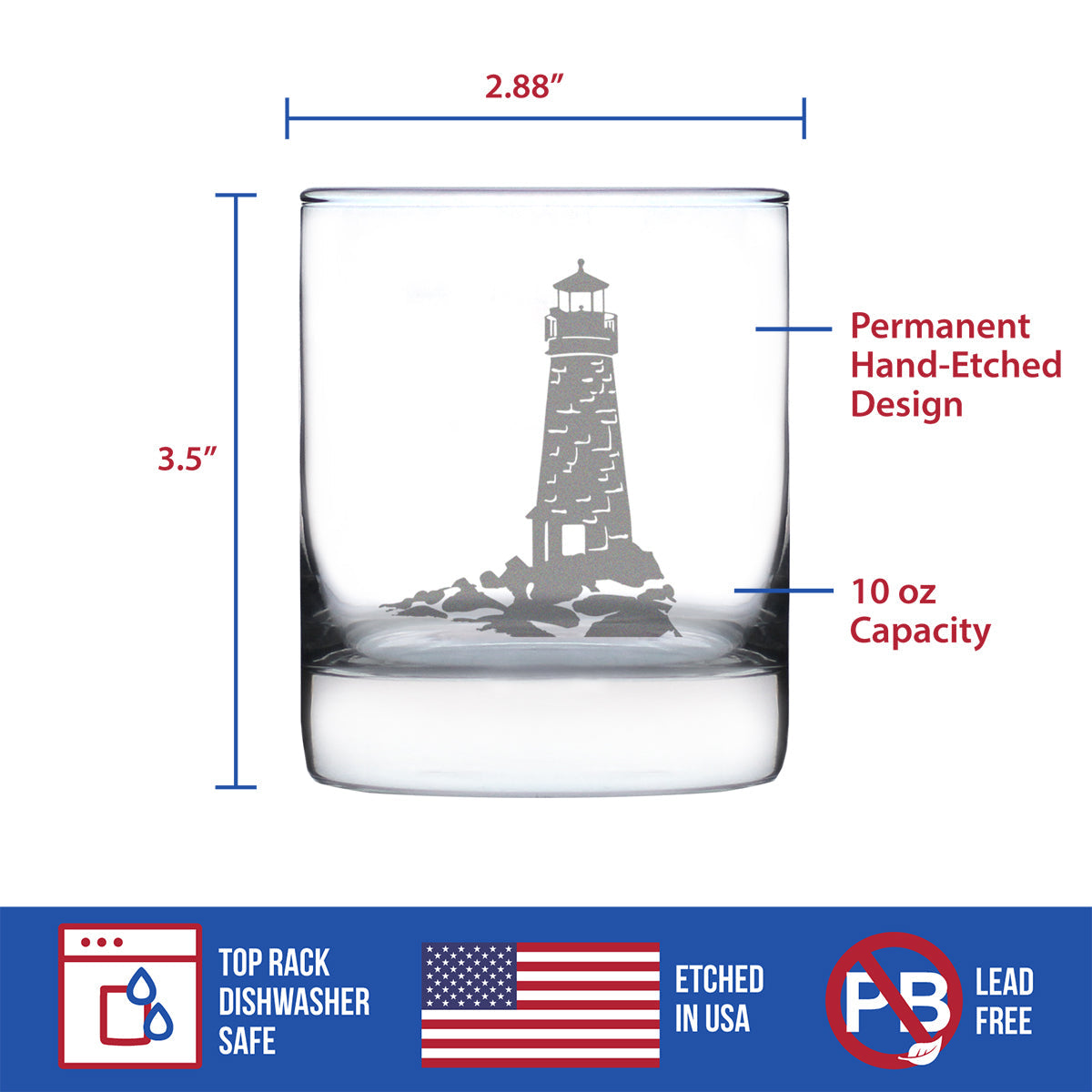 Lighthouse Whiskey Rocks Glass - Nautical Themed Decor and Gifts for Beach Lovers - 10.25 Oz Glasses