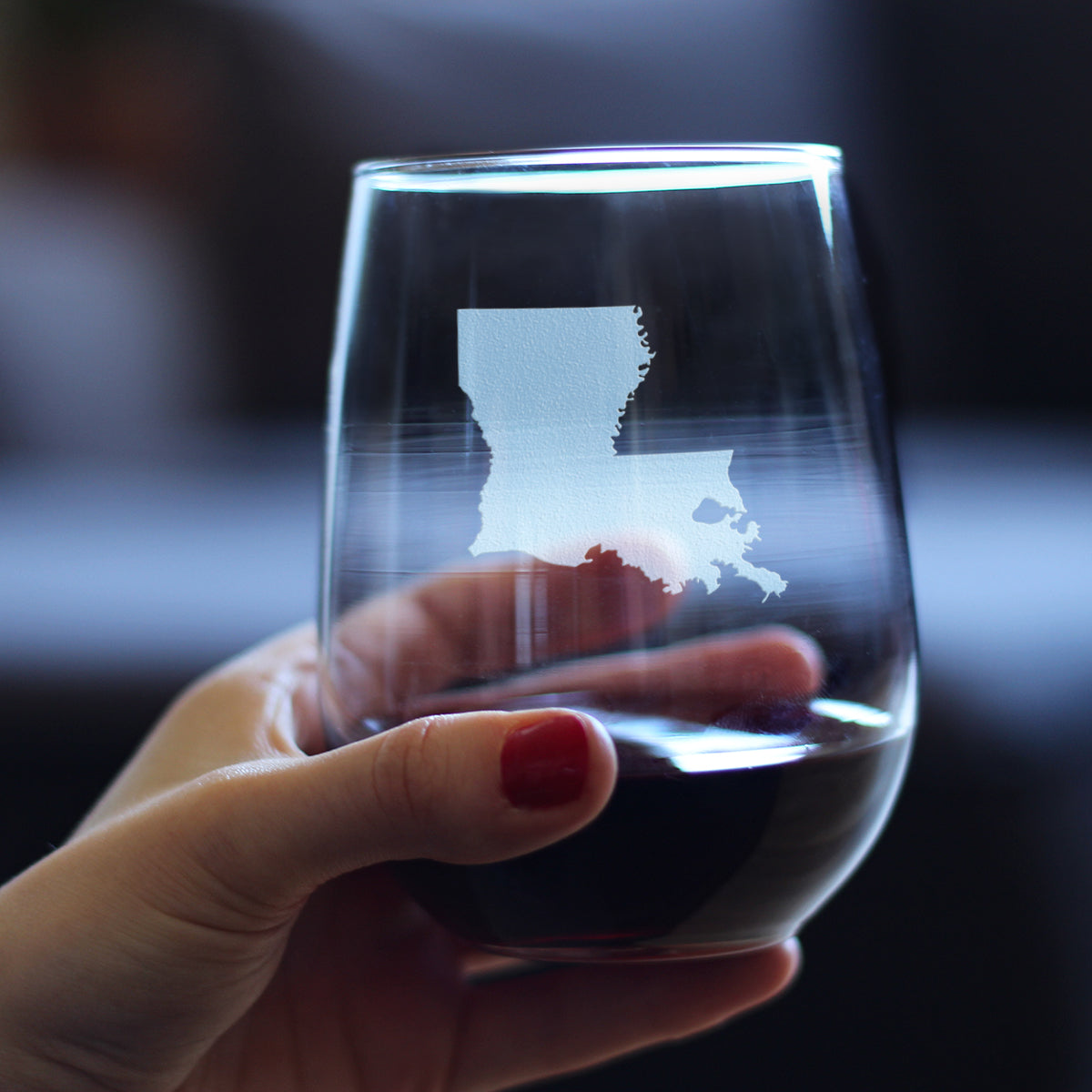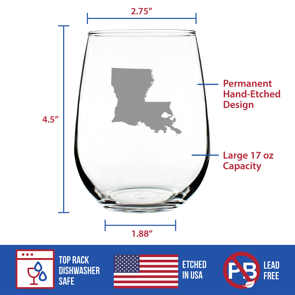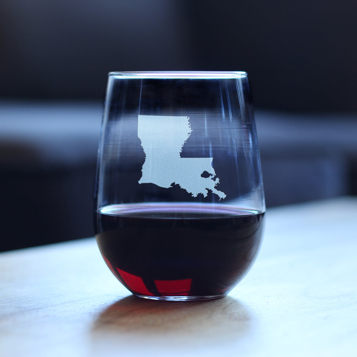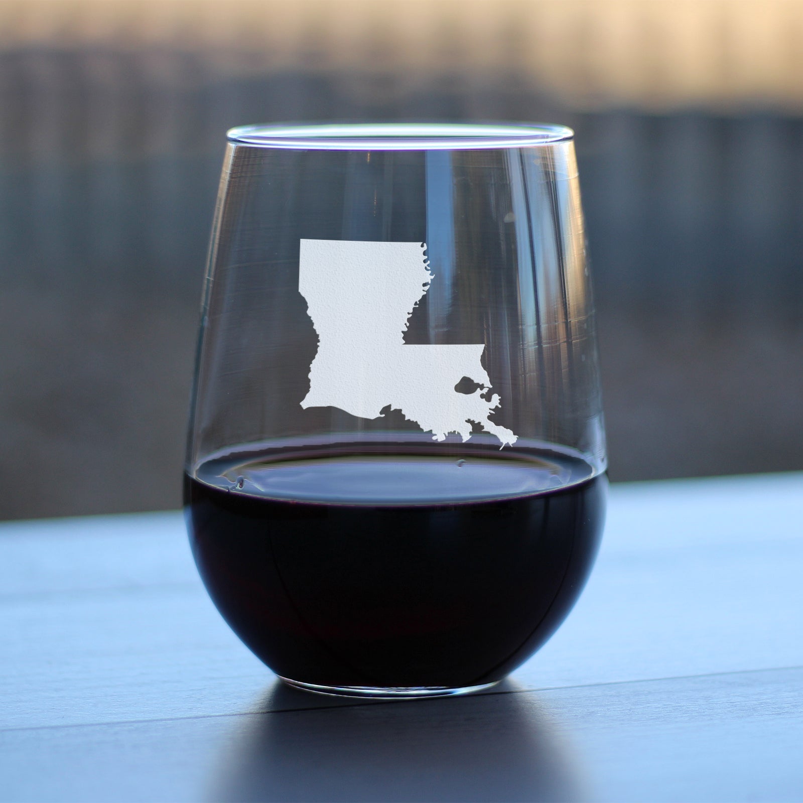 Louisiana State Outline Stemless Wine Glass - State Themed Drinking Decor and Gifts for Louisianian Women & Men - Large 17 Oz Glasses