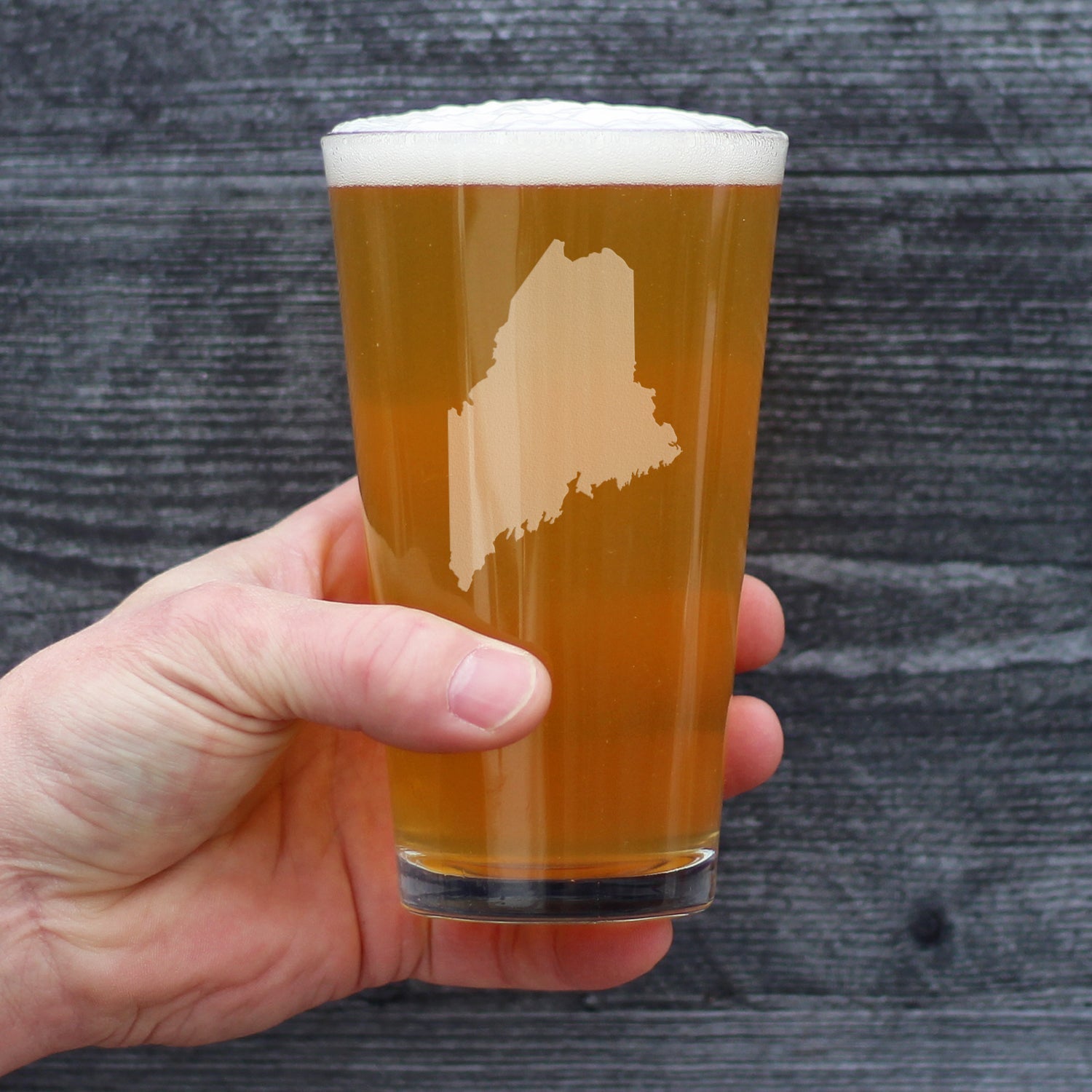 Maine State Outline Pint Glass for Beer - State Themed Drinking Decor and Gifts for Mainer Women & Men - 16 Oz Glasses
