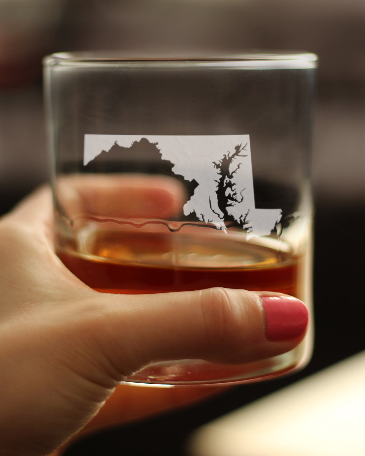 Maryland State Outline Whiskey Rocks Glass - State Themed Drinking Decor and Gifts for Marylander Women & Men - 10.25 Oz Whisky Tumbler Glasses