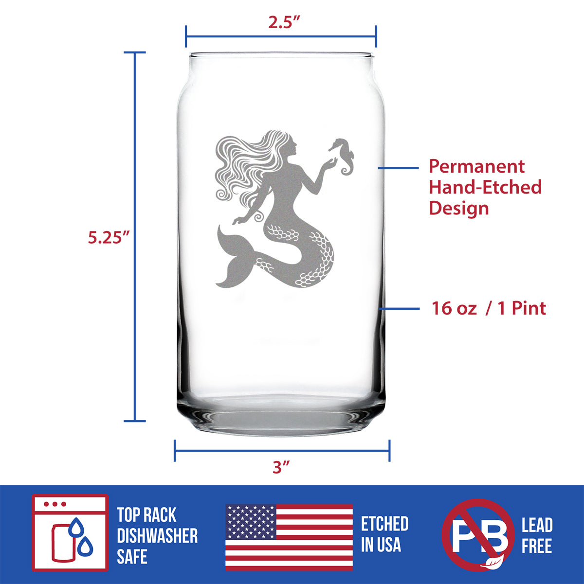 Mermaid Beer Can Pint Glass - Fun Mermaids Themed Decor and Gifts for Beach Lovers - 16 Oz Glasses