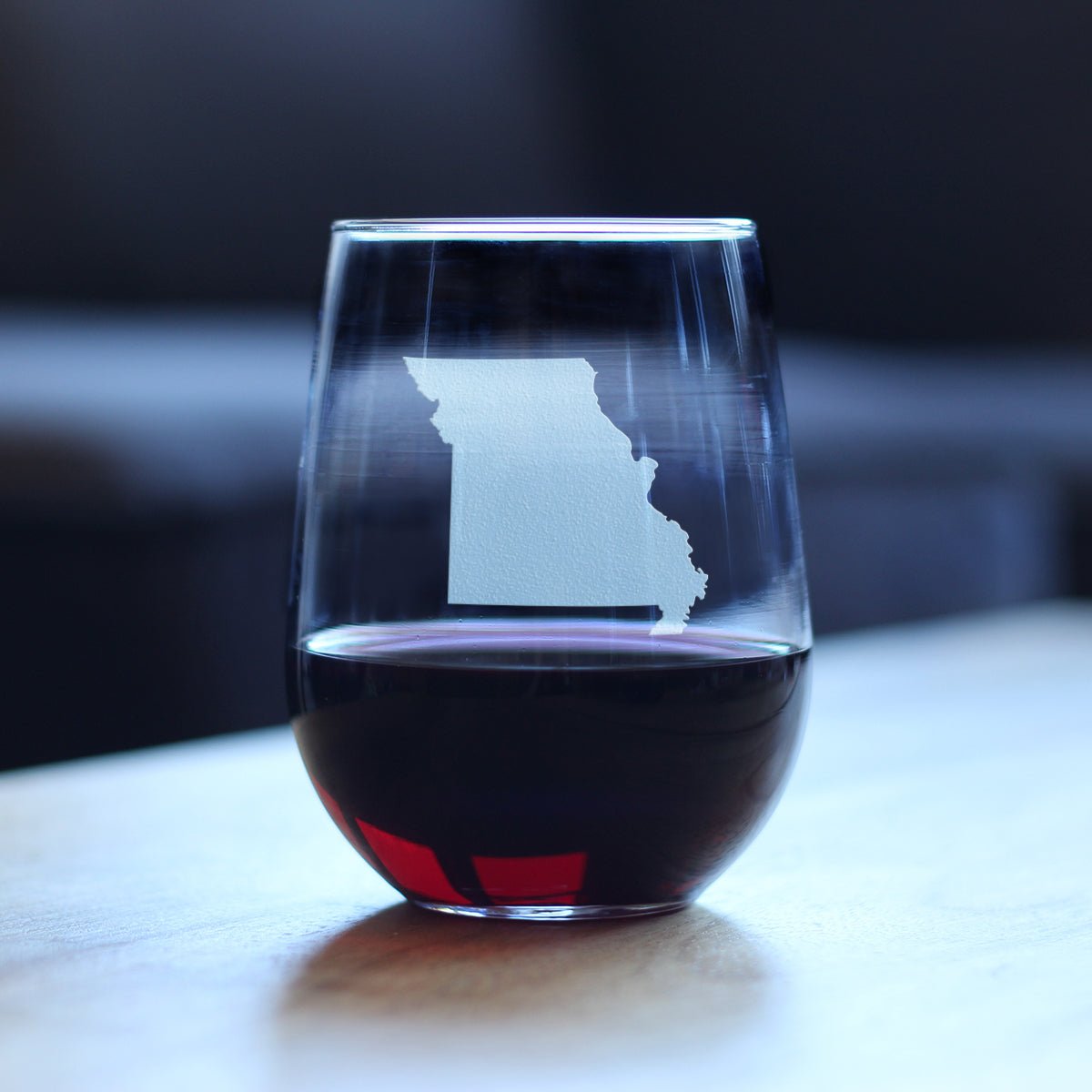 Missouri State Outline Stemless Wine Glass - State Themed Drinking Decor and Gifts for Missourian Women & Men - Large 17 Oz Glasses