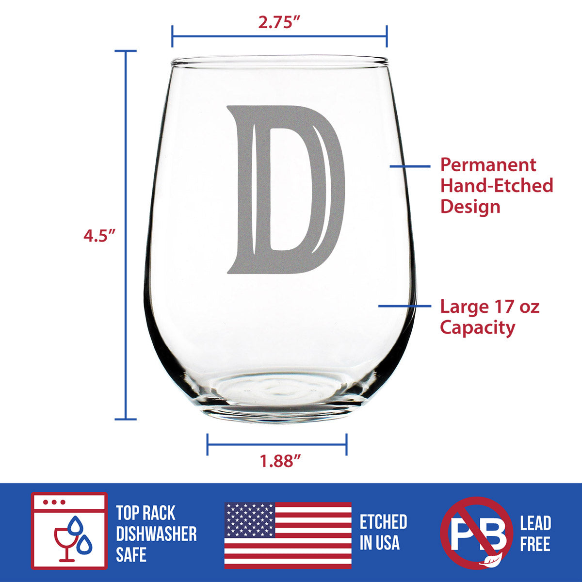 Monogram Bold Letter D - Stemless Wine Glass - Personalized Gifts for Women and Men - Large Engraved Glasses