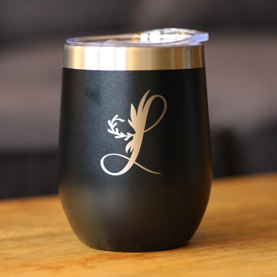 Monogram Floral Initial Letter L - Wine Tumbler ‐ Black