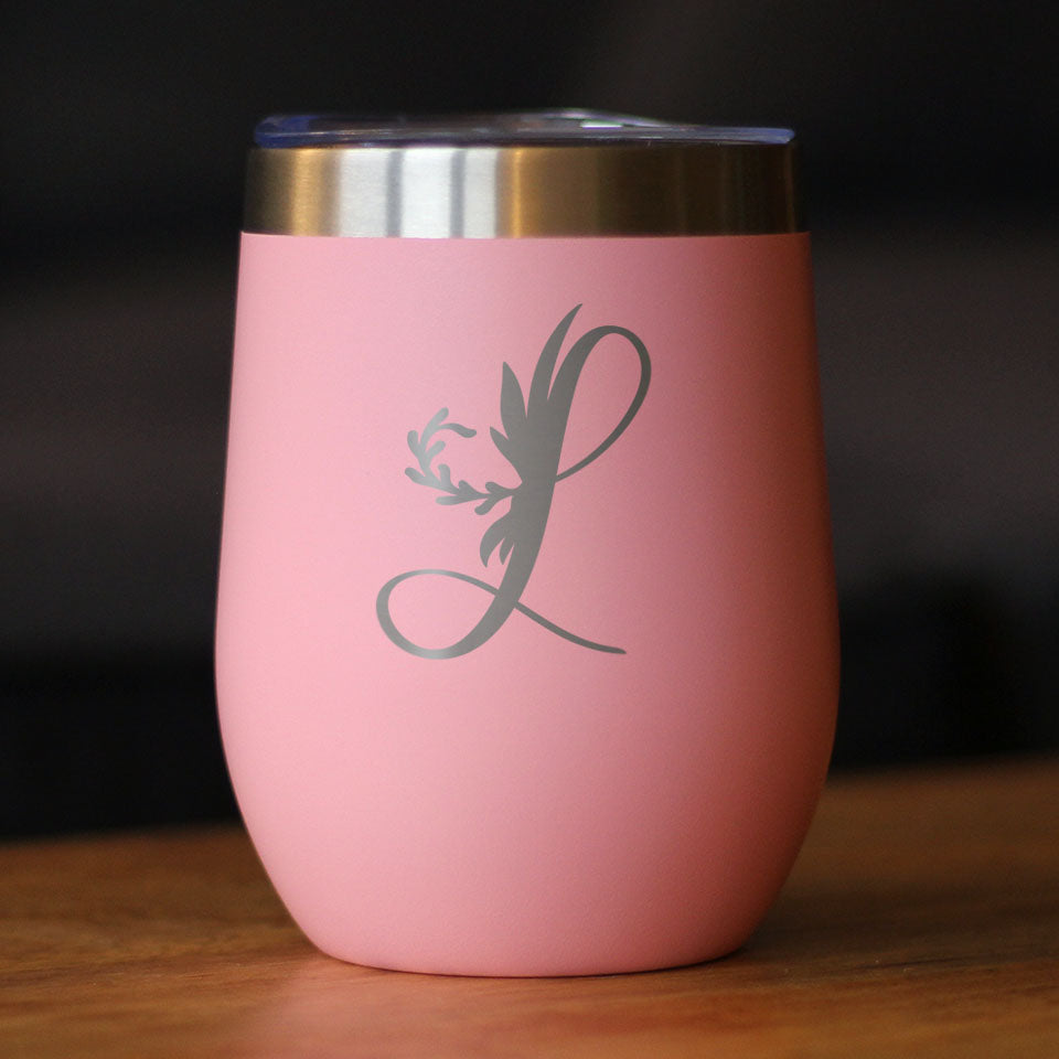 Monogram Floral Initial Letter L - Wine Tumbler ‐ Pink