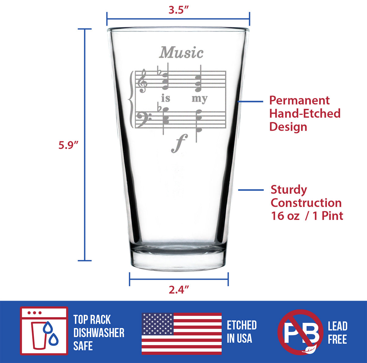 Music Is My Forte - Pint Glass for Beer - Funny Musician Gifts and Musical Accessories - 16 oz Glasses