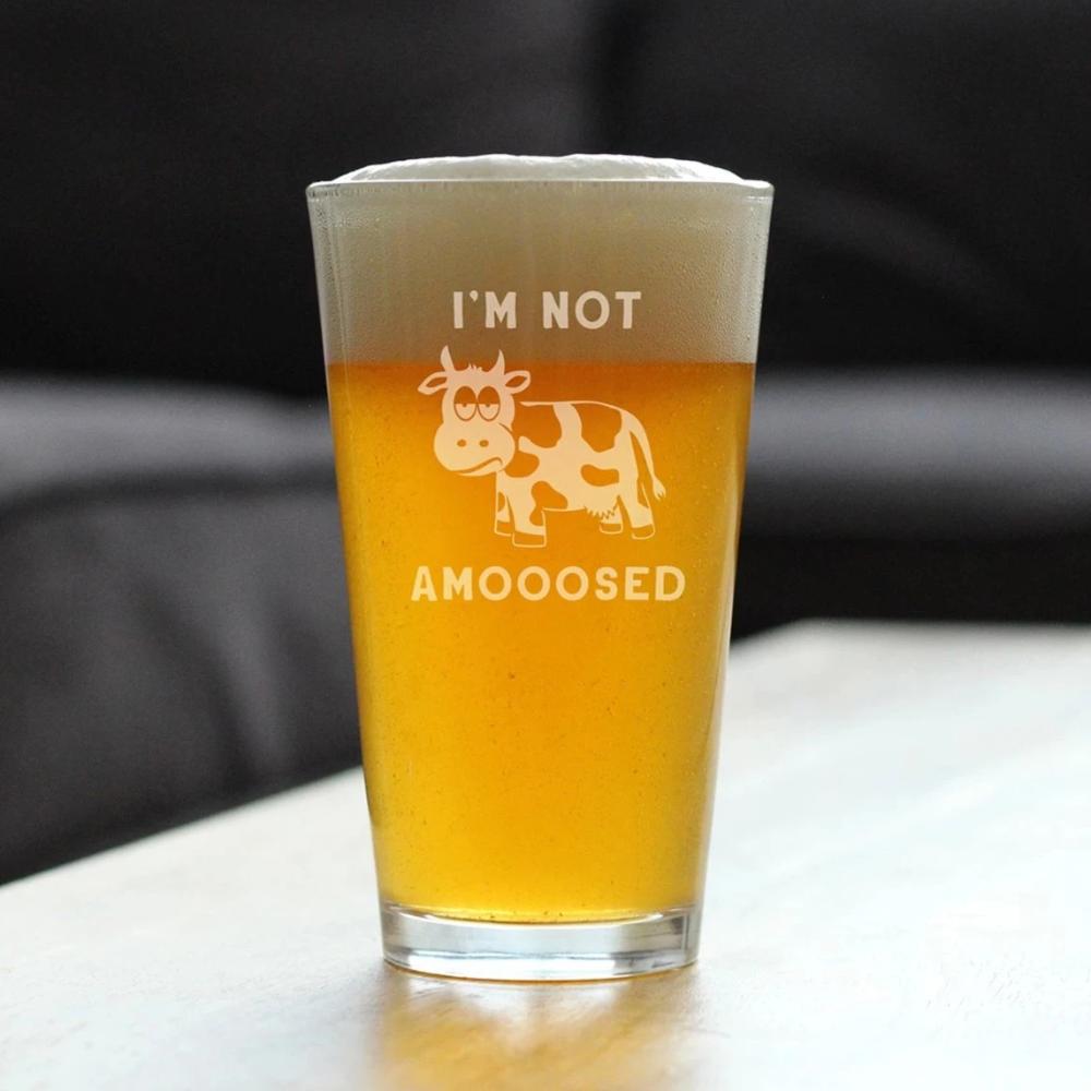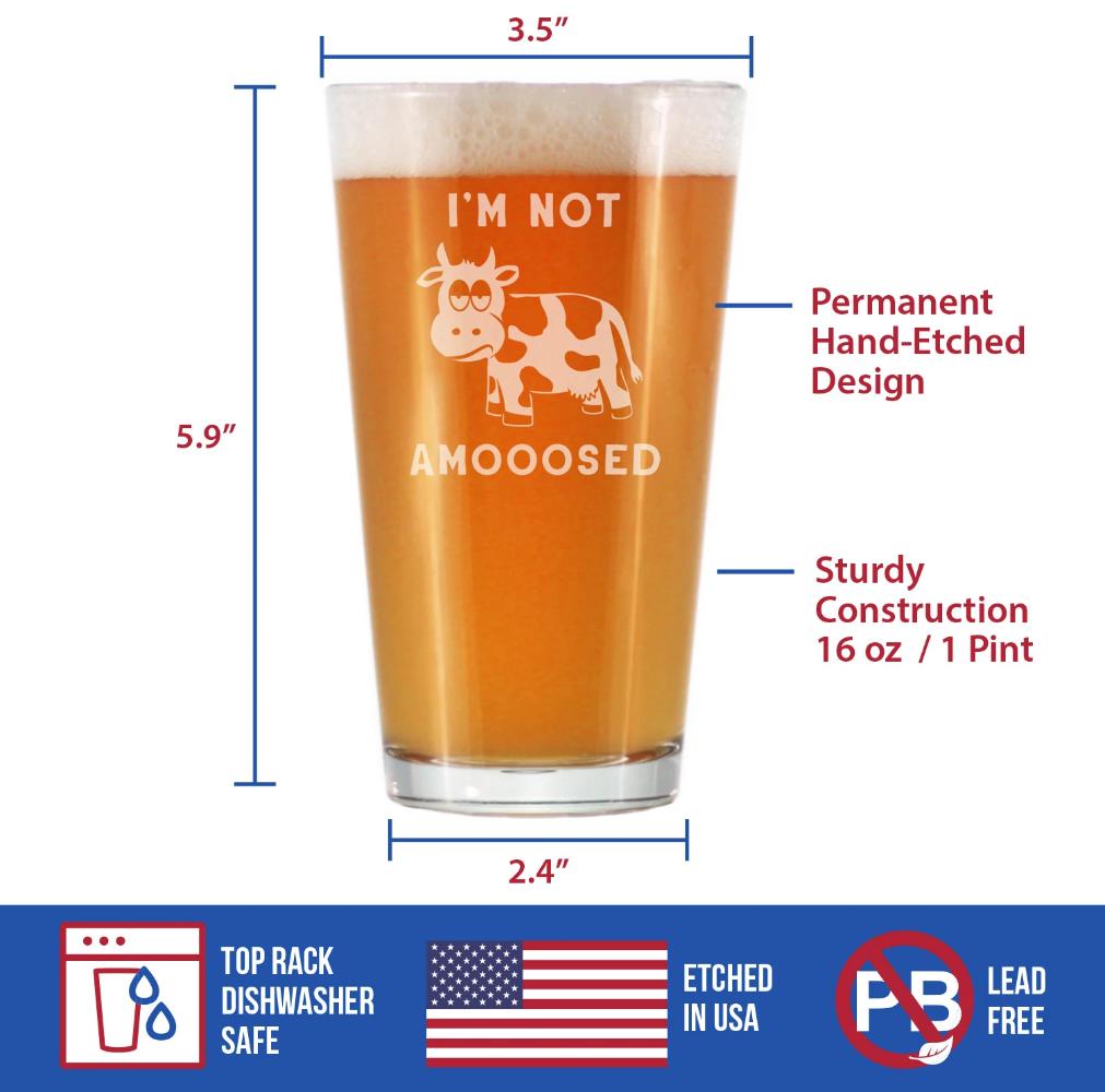 Not Amooosed - 16 oz Pint Glass for Beer - Funny Cow Gifts for Men & Women - Fun Cow Themed Decor