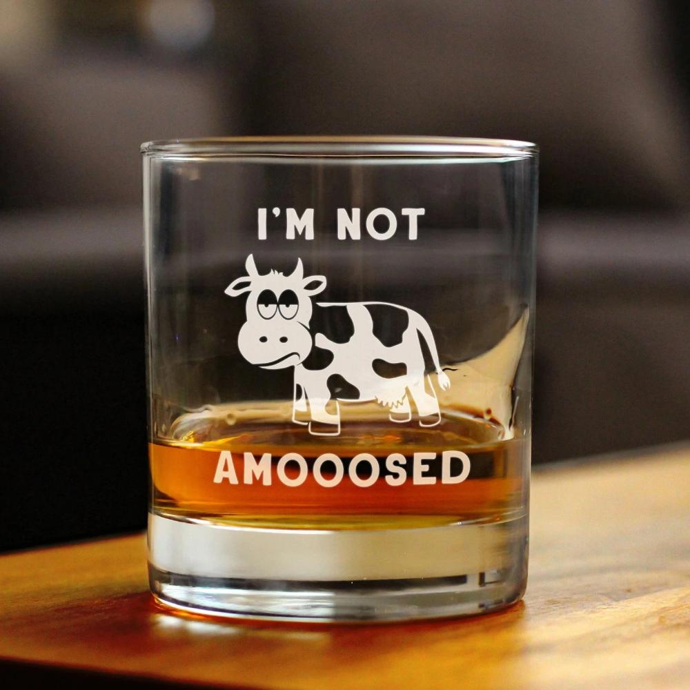 Not Amooosed - Funny Cow Whiskey Rocks Glass Gifts for Men & Women - Fun Whisky Drinking Tumbler Décor