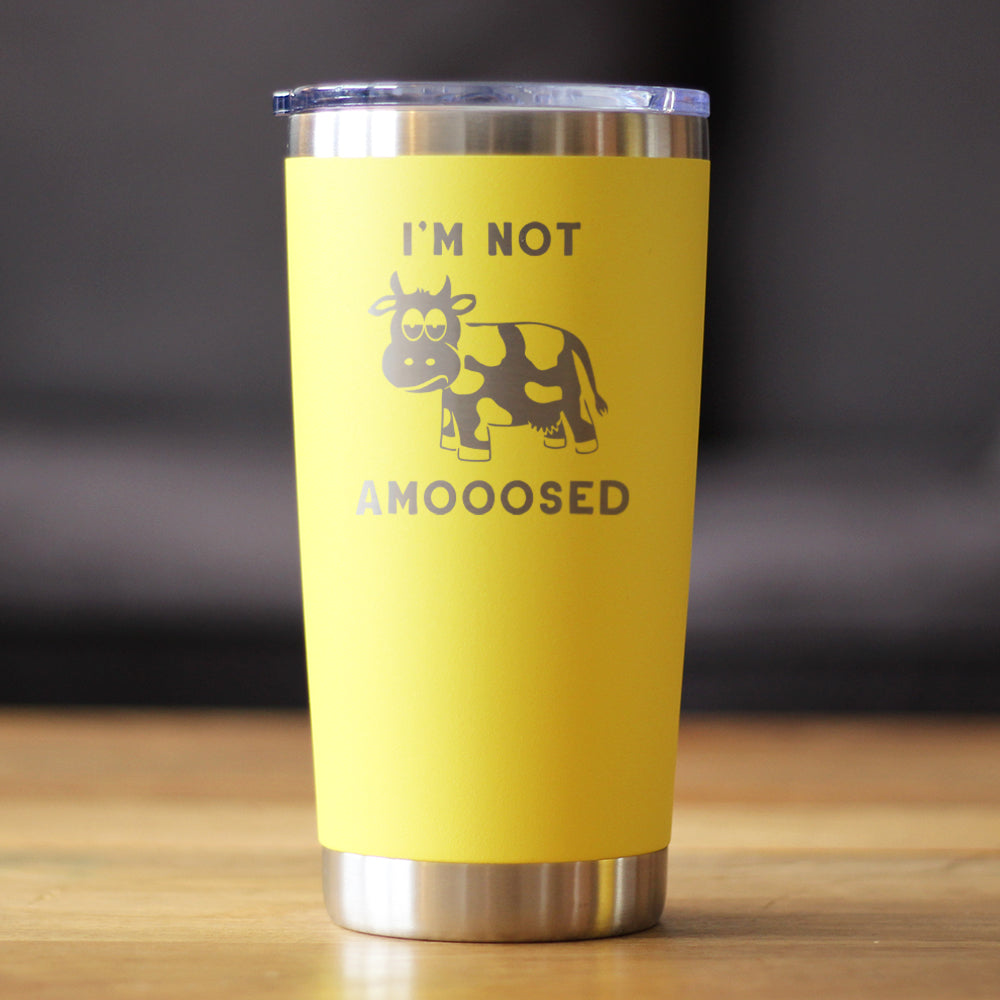 Not Amooosed - Insulated Coffee Tumbler Cup with Sliding Lid - Stainless Steel Insulated Mug - Funny Cow Themed Decor and Gifts ‐ Yellow