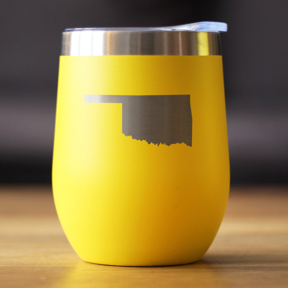 Oklahoma State Outline - Wine Tumbler Glass with Sliding Lid - Stainless Steel Insulated Mug - Oklahoma Gifts for Women and Men Oklahomans ‐ Yellow