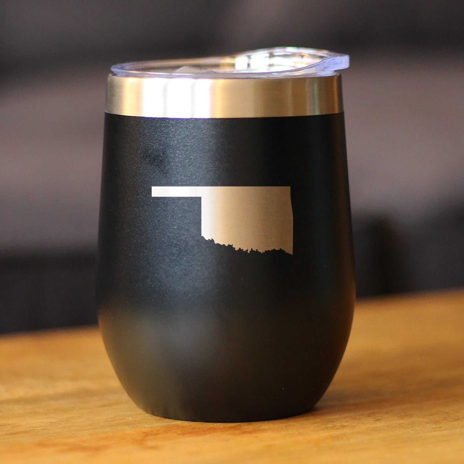 Oklahoma State Outline - Wine Tumbler Glass with Sliding Lid - Stainless Steel Insulated Mug - Oklahoma Gifts for Women and Men Oklahomans ‐ Black