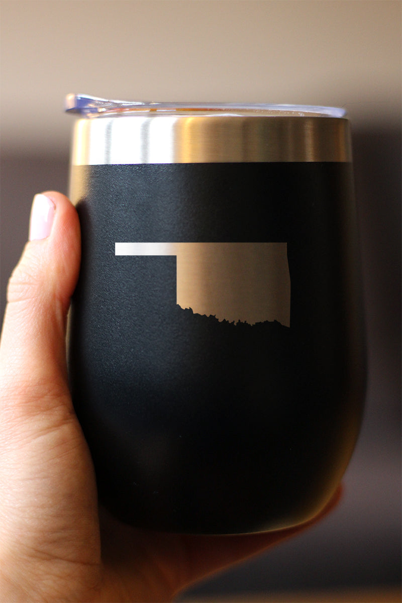 Oklahoma State Outline - Wine Tumbler Glass with Sliding Lid - Stainless Steel Insulated Mug - Oklahoma Gifts for Women and Men Oklahomans