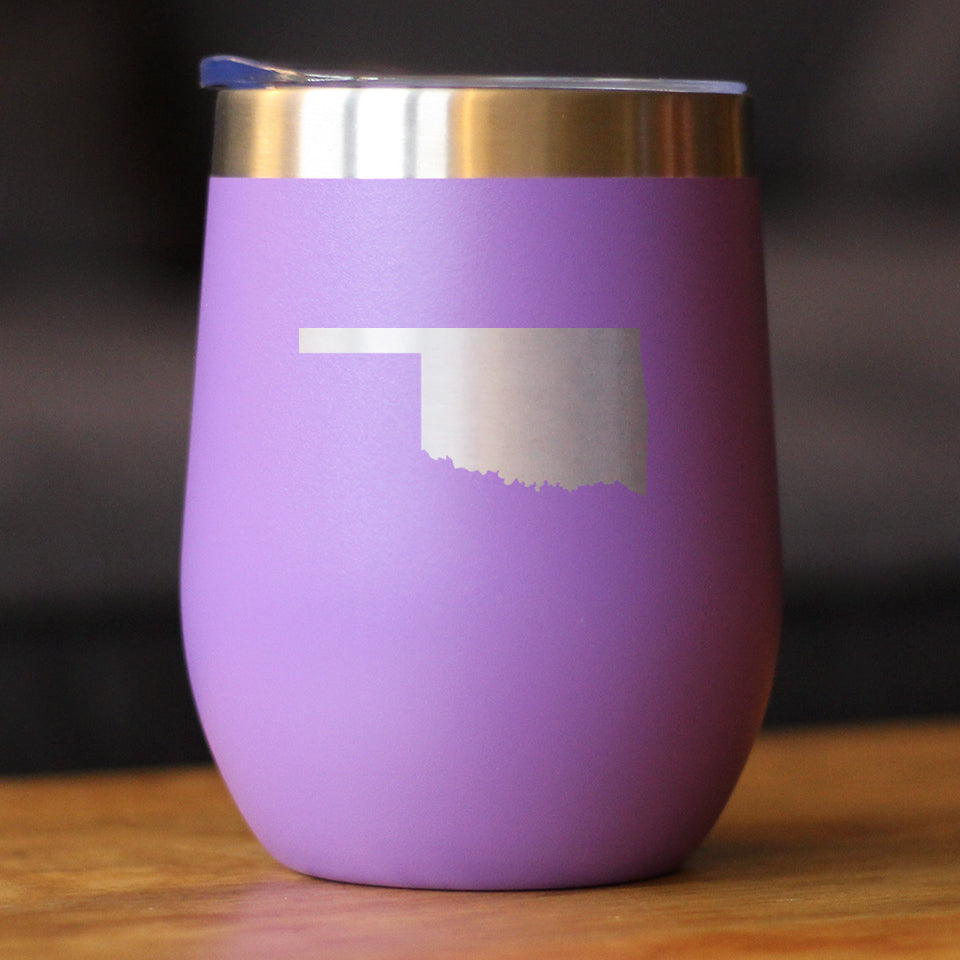 Oklahoma State Outline - Wine Tumbler Glass with Sliding Lid - Stainless Steel Insulated Mug - Oklahoma Gifts for Women and Men Oklahomans ‐ Purple