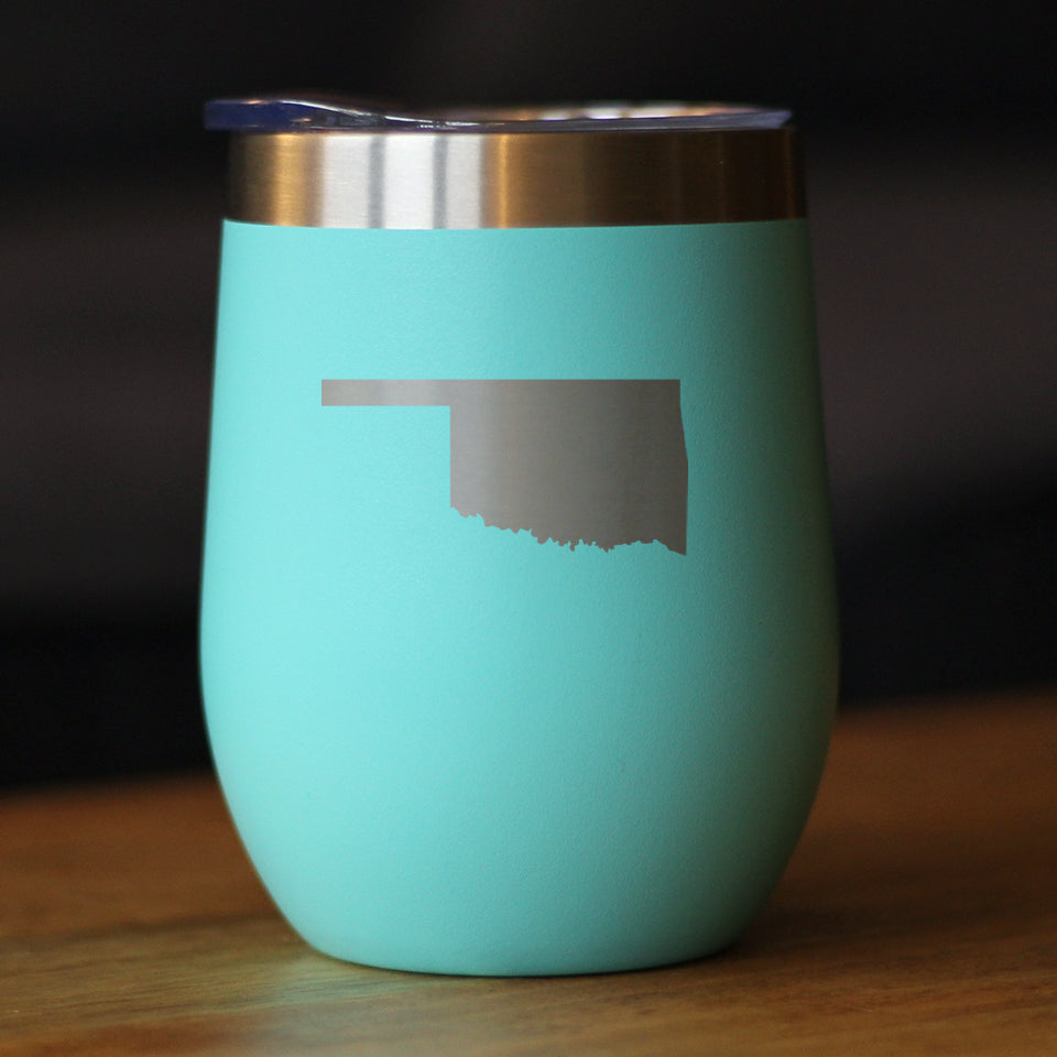 Oklahoma State Outline - Wine Tumbler Glass with Sliding Lid - Stainless Steel Insulated Mug - Oklahoma Gifts for Women and Men Oklahomans ‐ Teal