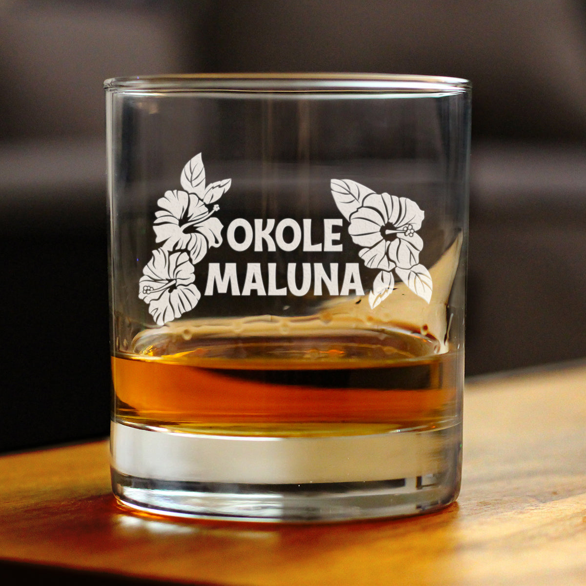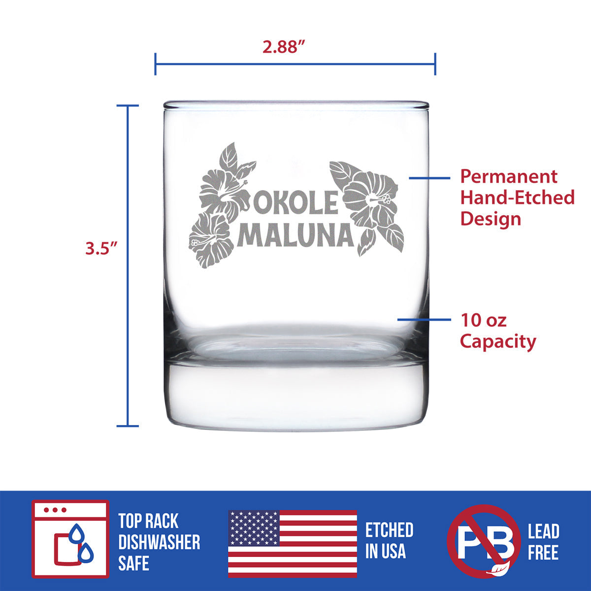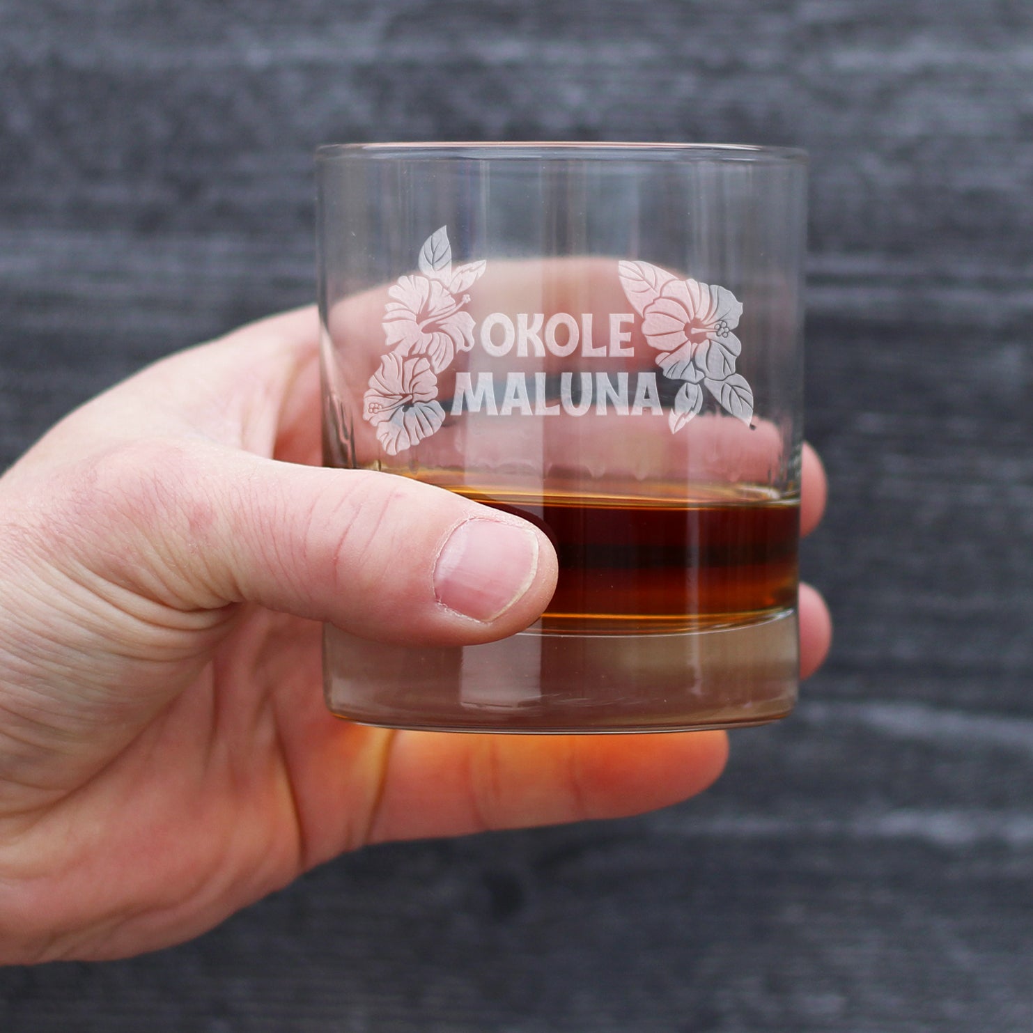 Okole Maluna Engraved 10 Oz Rocks or Old Fashioned Whiskey Glass, Hawaiian Cheers, Unique Party Cup for Men & Women Who Love Hawaii