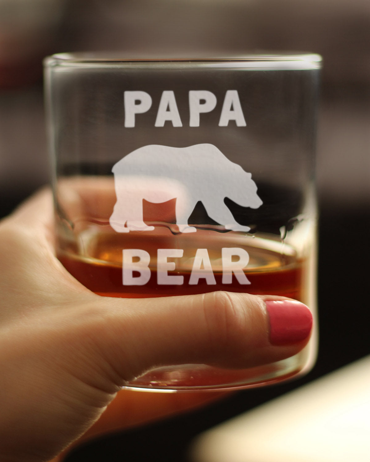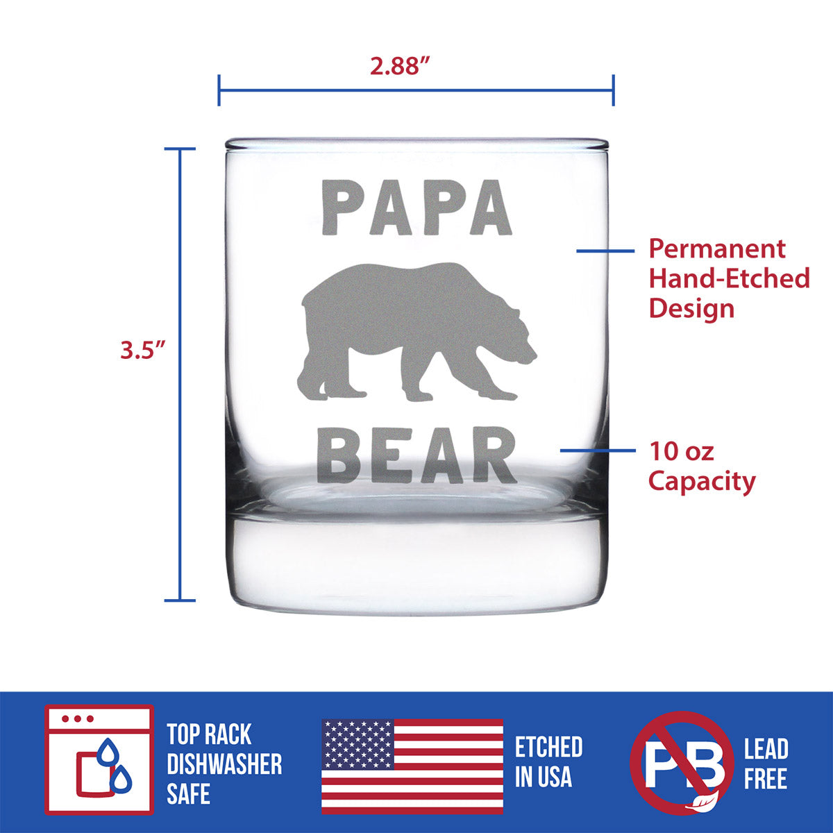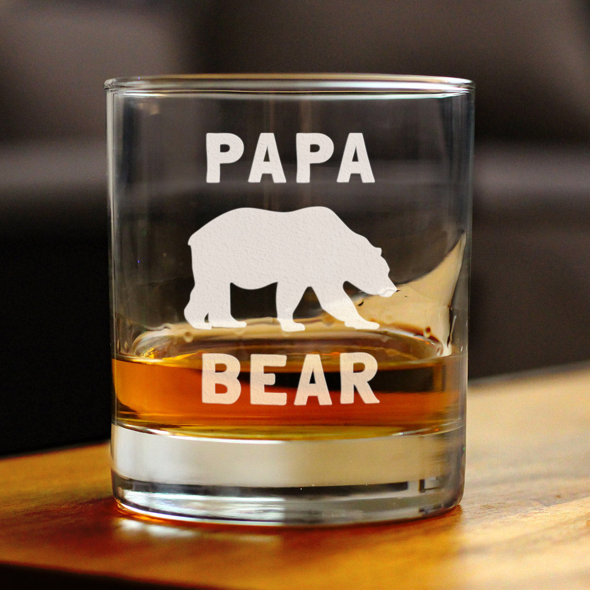 Papa Bear Whiskey Rocks Glass - Cute Funny Dad Gift Ideas for Father's Day or Birthday - 10.25 Oz Glasses