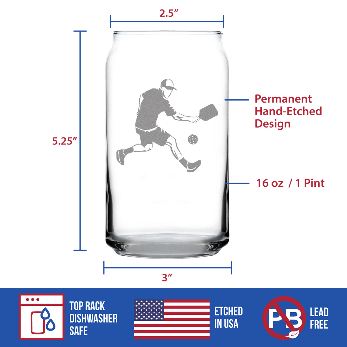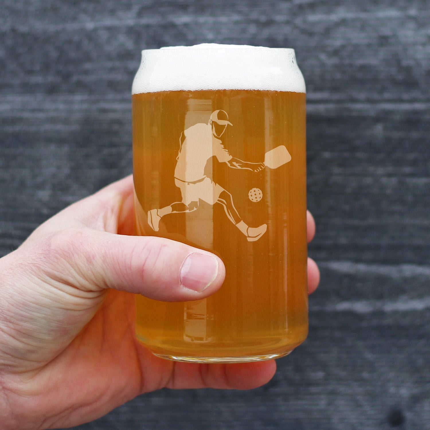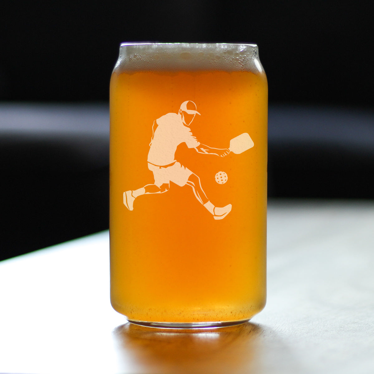 Pickleball Player Man Beer Can Pint Glass - Pickleball Gifts and Decor for Men - 16 Oz Glasses
