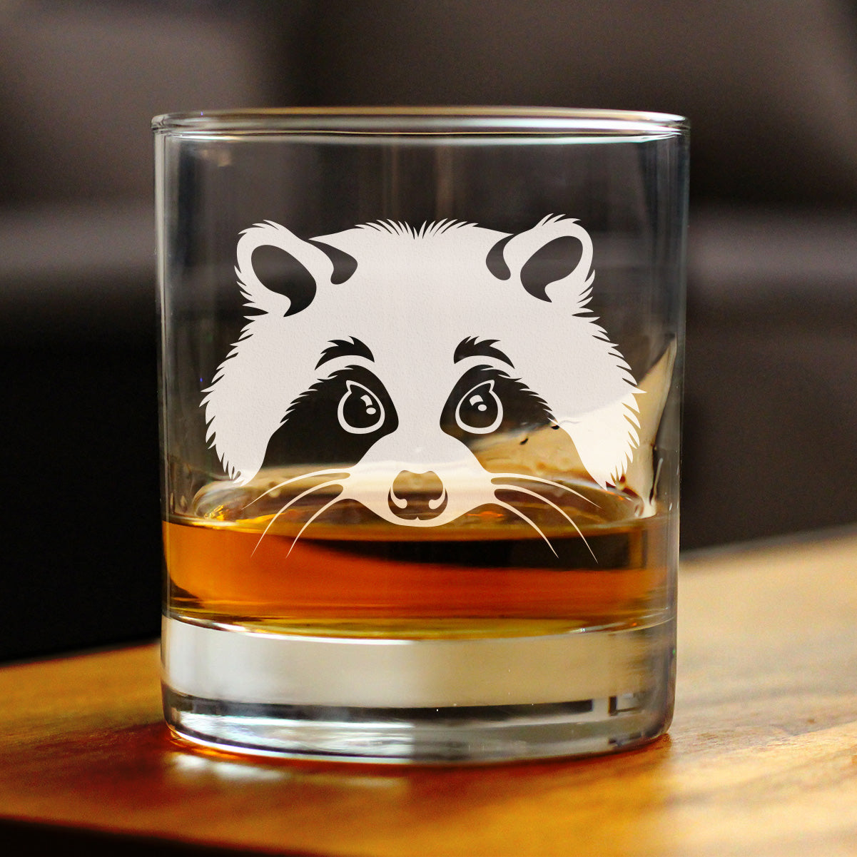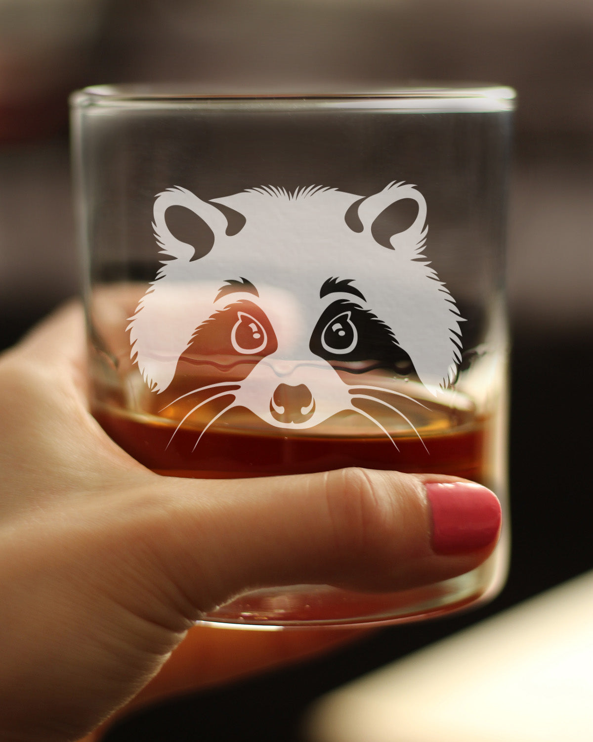 Raccoon Face - Whiskey Rocks Glass - Cute Raccoon Gifts for Animal Lovers - 10.25 oz Glasses