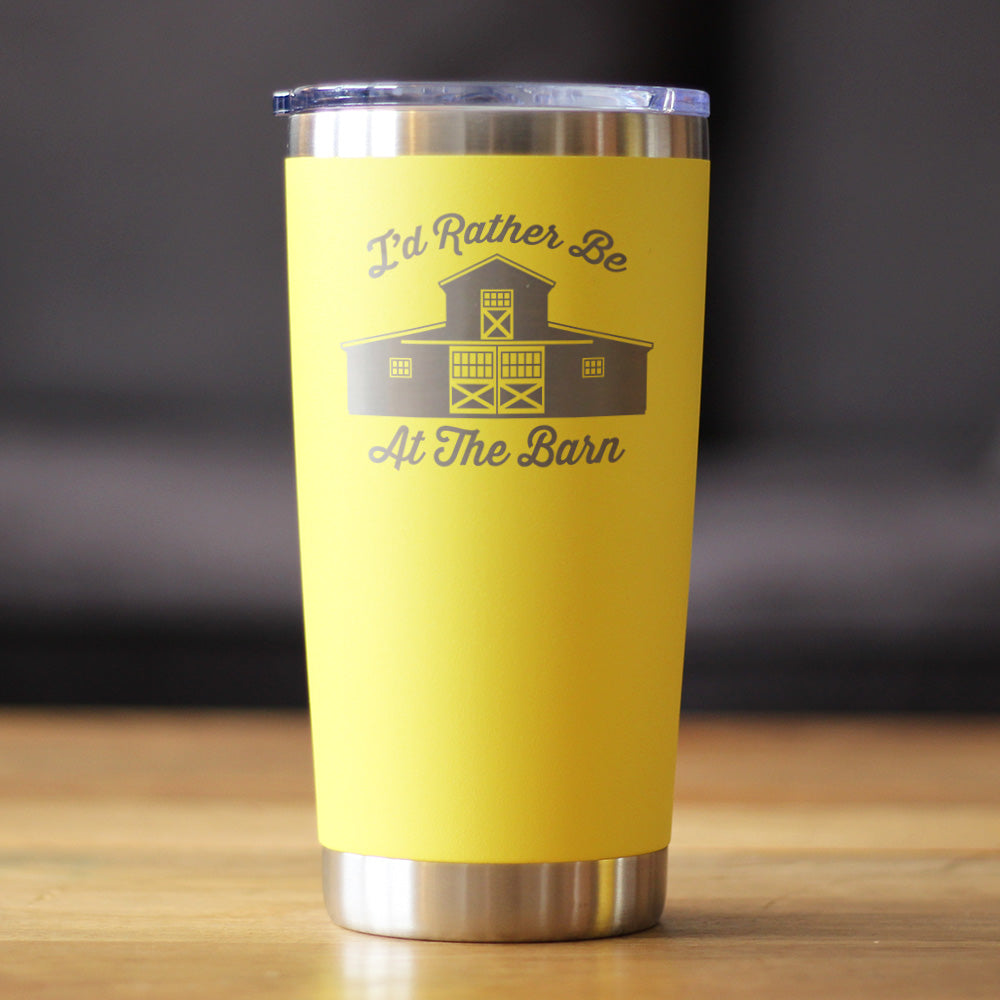 Rather Be At Barn - Insulated Coffee Tumbler Cup with Sliding Lid - Stainless Steel Insulated Mug - Farmhouse Gifts & Decor ‐ Yellow
