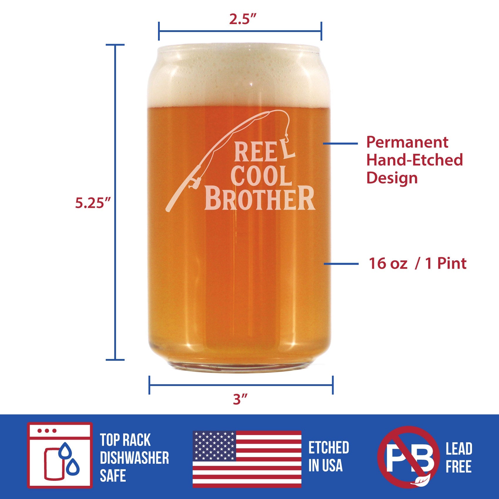 Reel Cool Brother - Beer Can Pint Glass - Funny Fishing Gifts for Fisherman Brothers - Fun Fish 16 oz Cups