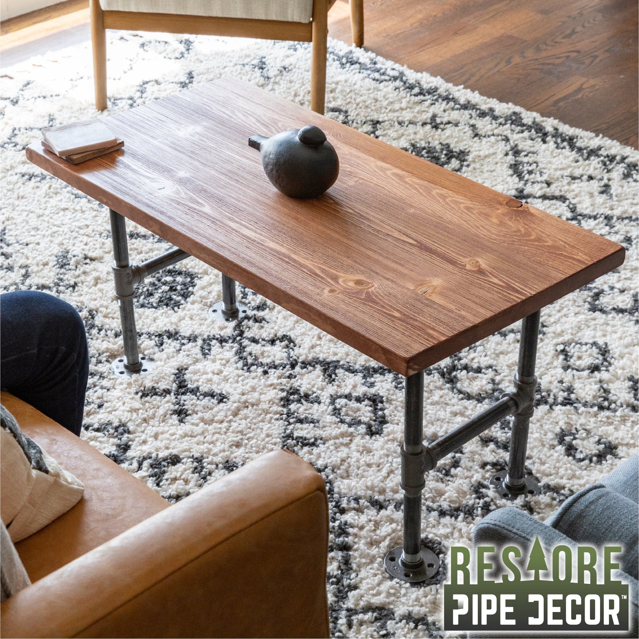 Natural variations and a unique distressed finish from solid end-grain wood makes our RESTORE wood collection feel and look refined, industrial, and rustic all in one. Each piece of handcrafted wood tells a story of an ethically sourced product carefully obtained in North America through responsible forestry efforts that employ low impact logging methods. RESTORE by PIPE DÉCOR takes pride in providing distinctive, one-of-a-kind pieces that showcase both sophistication and sustainability, providing a product that seamlessly fits into your home. The wire-brushed texture and hand-stained technique offers the appearance of an artfully weathered product that brings out the wood's natural beauty. Natural variations, such as knotting, grain, and color make every piece of wood unique. Our finishing process enhances these existing characteristics - each unique knot becomes a beautiful accent, while the natural wood grain offers organic movement. Pillowed edges accentuate the final version of this artisanal coffee table.