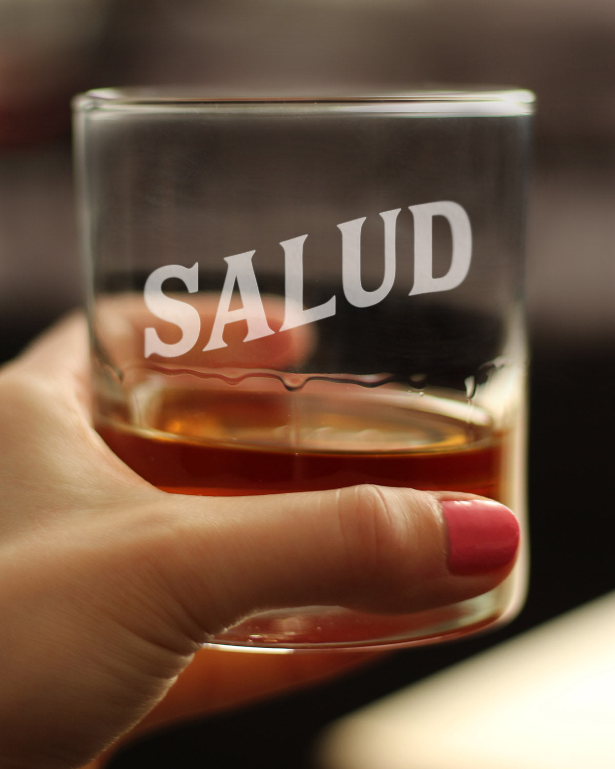 Salud - Spanish Cheers - Whiskey Rocks Glass - Cute Spainish Themed Gifts or Party Decor for Women and Men - 10.25 Oz